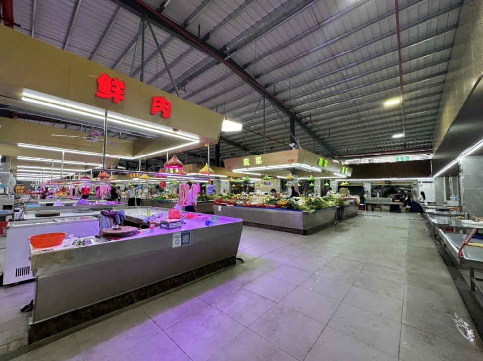 占地2000多平方米的六谷蓮塘市場是淡水城區(qū)的一家老市場,過去存在裝修簡陋、光線不足、環(huán)境昏暗等問題。去年,該市場被納入首批實施綜合治理提質(zhì)升級工作的農(nóng)貿(mào)市場,并在4月率先啟動升級改造,如今已完成提質(zhì)升級。