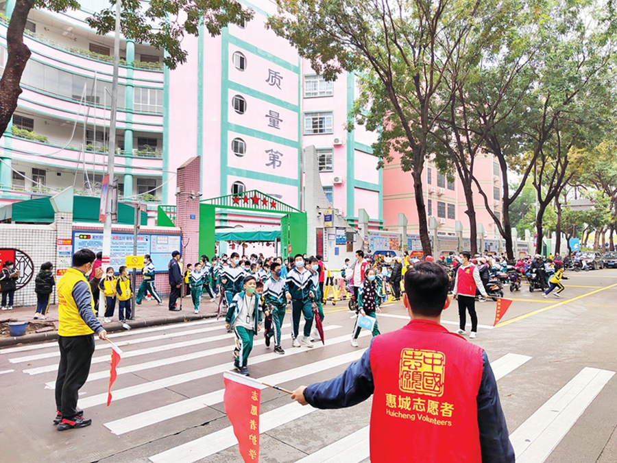在學(xué)校,有志愿者的“一抹紅”。每天上、放學(xué)時間,在惠城區(qū)水口中心小學(xué),你都能看到護學(xué)崗志愿者在開展交通安全宣傳、文明出行勸導(dǎo)、安全出行提示、交通秩序維護等志愿服務(wù),市善水志愿服務(wù)隊的志愿者們?nèi)諒?fù)一日地開展文明交通引導(dǎo)志愿服務(wù)、守護著學(xué)生平安上學(xué)放學(xué)。