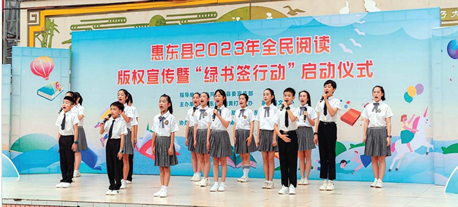 惠州日?qǐng)?bào)訊 (記者洪鵲兒 通訊員葉衍達(dá))4月21日,惠東縣2023年全民閱讀、版權(quán)宣傳暨“綠書簽行動(dòng)”啟動(dòng)儀式在平山第一小學(xué)舉行。惠東縣委宣傳部、縣教育局、縣民政局、縣文明辦、縣版權(quán)局、新華書店等有關(guān)負(fù)責(zé)人以及平山第一小學(xué)700余名師生參加。