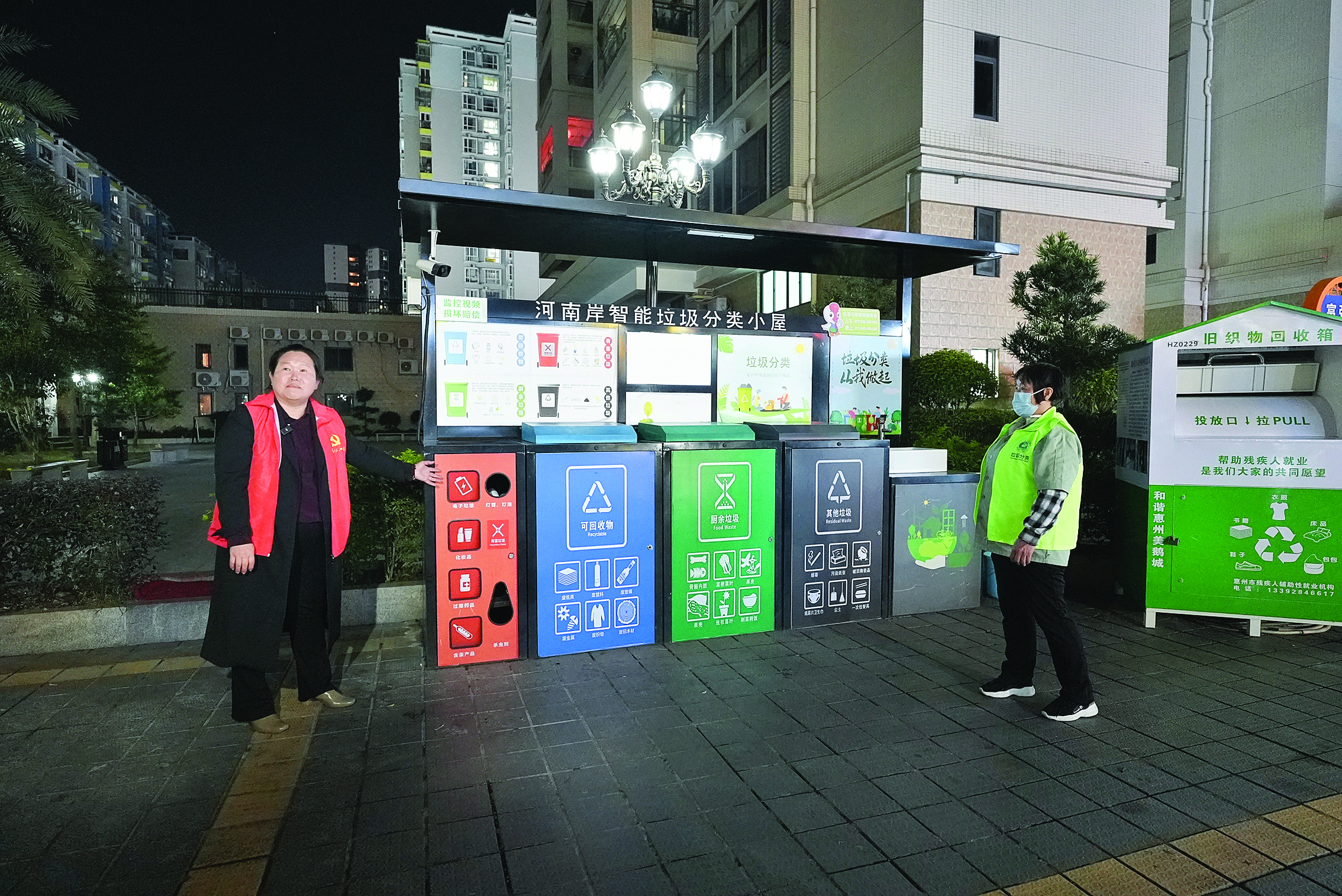 工作人員在智能垃圾分類(lèi)小屋值守。 惠州日?qǐng)?bào)記者羅劍業(yè) 攝