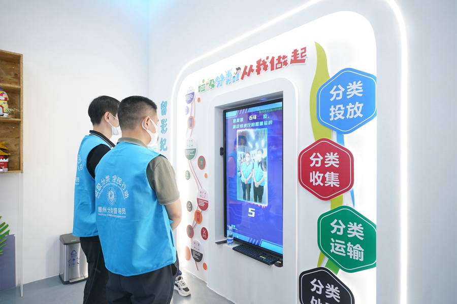 市民在市生活垃圾分類科普館參觀體驗(yàn)。