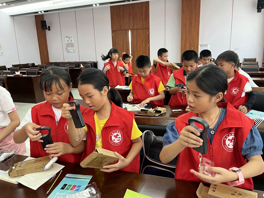 學(xué)生志愿者接受垃圾分類培訓(xùn)。