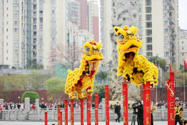 人們?cè)谙矐c日子里用舞獅龍來祈禱獅子的保佑。一件花團(tuán)錦舞獅子,是中國優(yōu)秀的民間藝術(shù),每逢新春佳節(jié)或集會(huì)慶典,民間都以獅舞前來助興祈福。