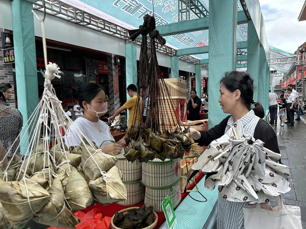 同時(shí),一旁的粽子品鑒會(huì)擺設(shè)了惠東地區(qū)的燒肉粽、蛋黃粽、海鮮粽及灰水粽等特色粽子,讓大家提前感受節(jié)日氣氛。