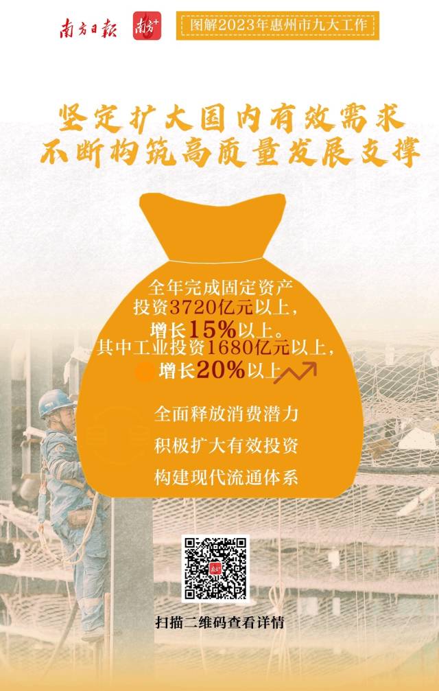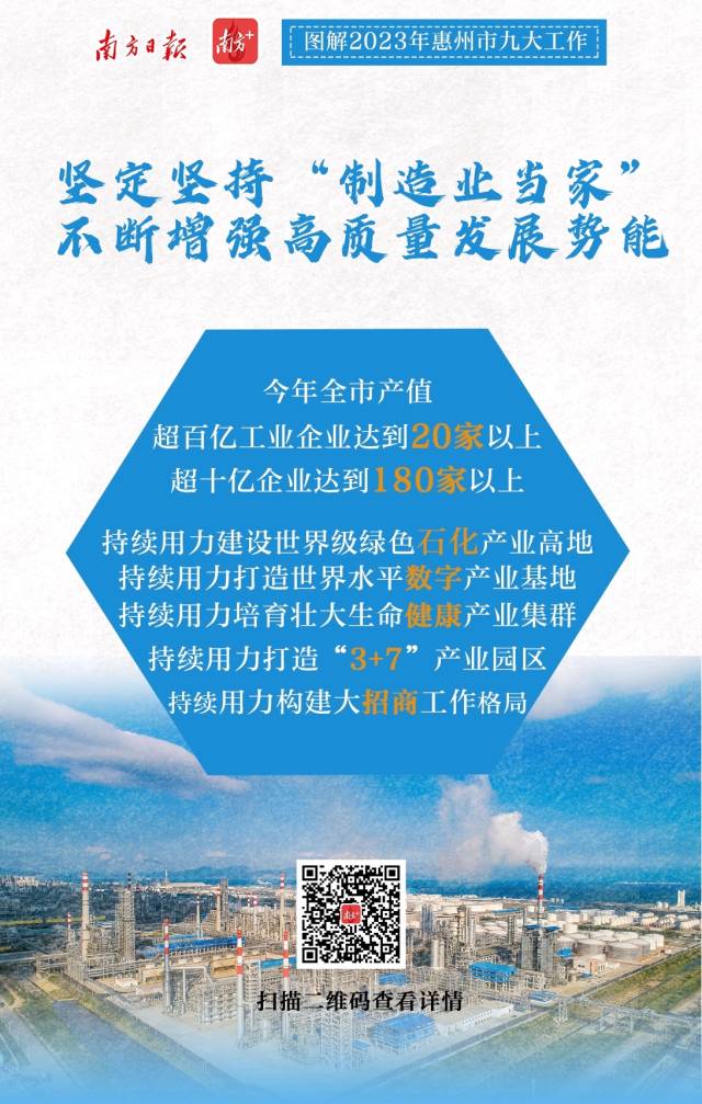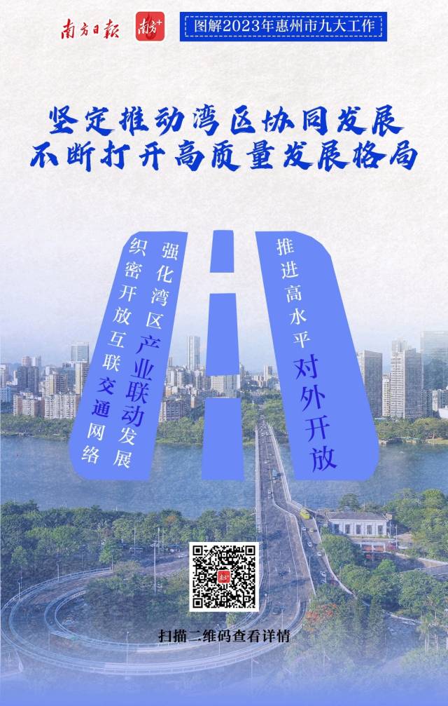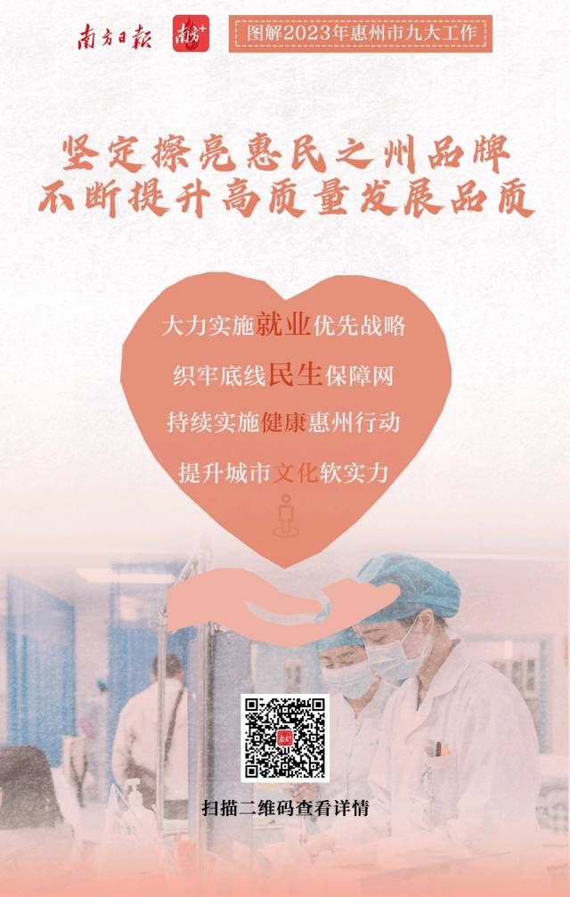 2月7日上午,惠州市第十三屆人民代表大會(huì)第三次會(huì)議開幕。會(huì)上,惠州市委副書記、市長溫金榮作市政府工作報(bào)告;葜菔姓ぷ鲌(bào)告提出,2023年重點(diǎn)聚焦九個(gè)方面重點(diǎn)工作,南方日?qǐng)?bào)、南方+客戶端推出9張海報(bào)帶你速覽。