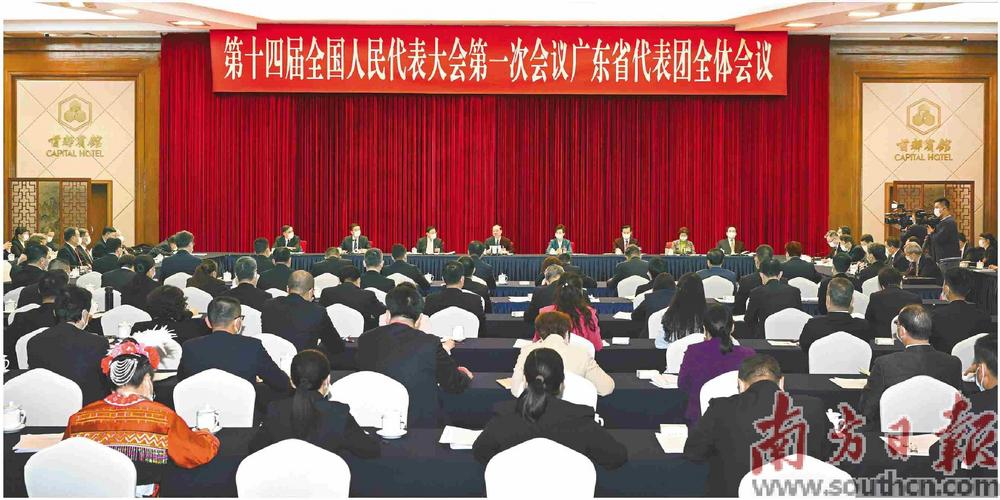 3月5日下午,十四屆全國人大一次會議廣東省代表團舉行全體會議,審議政府工作報告。