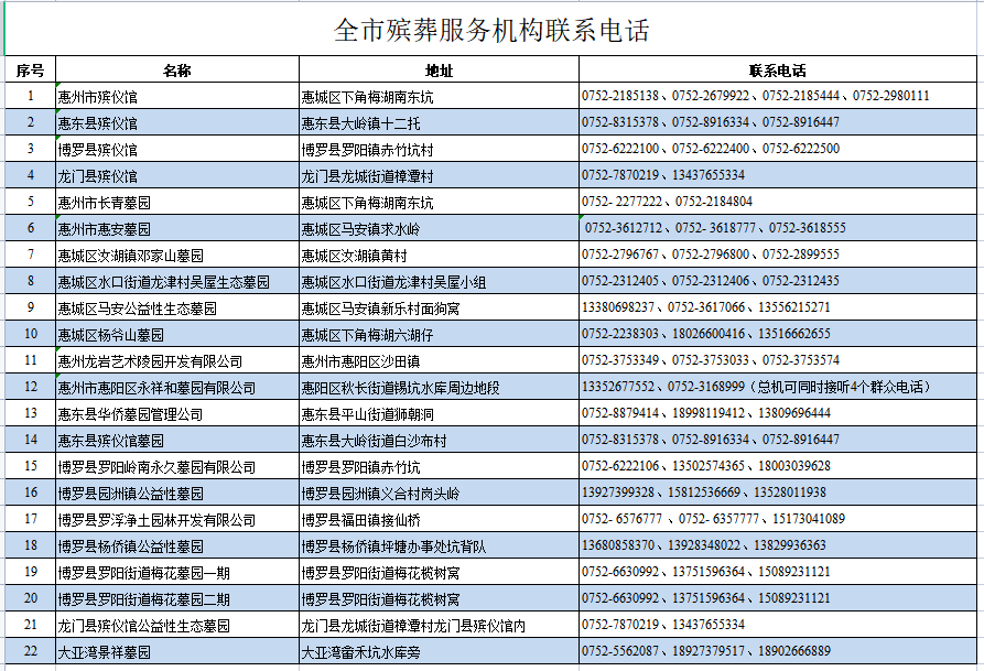 市民政局方面提醒,對惠州市殯儀館內超期存放10年以上沒有續(xù)費和認領的骨灰盒,如有家屬認領,請于通告發(fā)布之日起60日內,攜帶骨灰存放證、本人身份證明到殯儀館骨灰寄存收費處辦理骨灰續(xù)存或取回手續(xù)。逾期不辦理的,由殯儀館根據《惠州市無人認領遺體處理辦法》對骨灰實施生態(tài)安葬。請相關市民支持配合。