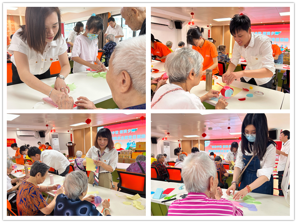 當(dāng)日,帶著濃濃的關(guān)愛,惠州日報社新媒體政務(wù)服務(wù)中心黨支部和水口街道姚村村黨總支的十多名黨員為康養(yǎng)中心的老人們送上月餅、牛奶、蛋黃酥等中秋節(jié)禮物。老人們對黨員的到來表示熱烈歡迎,一首由九如康養(yǎng)中心的李泳軒、丘金貝等五位老人帶來的合唱《歌唱祖國》熱情洋溢,演唱者精神矍鑠、聲音洪亮,富有感情的音樂引來黨員和臺下老人家集體跟唱。一曲結(jié)束,丘大爺帶來自己填詞的獨唱《東江謠》,將活動氣氛推向另一個高潮。演唱結(jié)束后,黨員與老人們共同制作中秋小燈籠。期間,黨員與老人們一邊互相幫助,一邊親切交談,拉家常、問冷暖,詳細(xì)了解他們在這里的生活情況、身體健康狀況,并叮囑老人注意秋季天氣變化,好好保重身體。一個個靈巧可愛的小燈籠在歡聲笑語中新鮮“出爐”,老人們笑逐顏開,現(xiàn)場氣氛一片祥和,黨員和老人們的心也在這樣融洽的氛圍里不斷貼近。