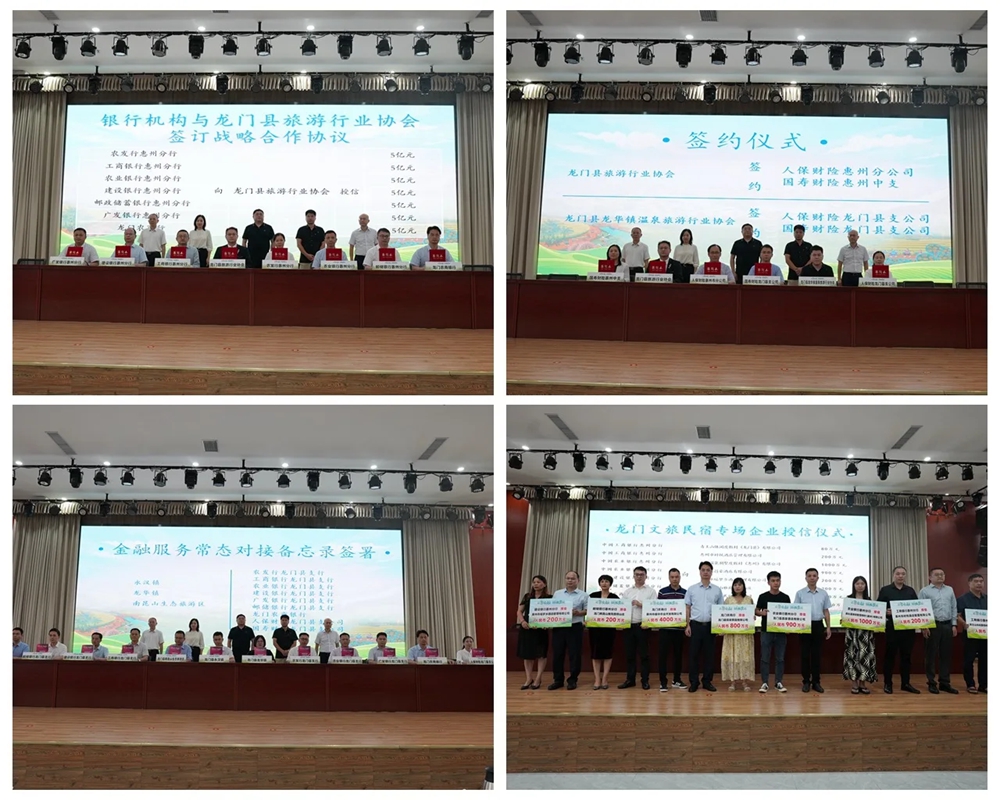 活動中,通過前期的摸底調(diào)查和對接,5家銀行向本地文旅企業(yè)代表現(xiàn)場授信7400萬元,9家金融機構(gòu)與龍門縣旅游行業(yè)協(xié)會簽署合作協(xié)議并給予授信金額共35億元,2家保險公司龍門支公司與龍華鎮(zhèn)溫泉旅游行業(yè)協(xié)會簽署合作協(xié)議;同時,還有9家金融機構(gòu)龍門縣分支機構(gòu)與龍門縣永漢鎮(zhèn)等3個重點鄉(xiāng)鎮(zhèn)簽署了常態(tài)化金融服務(wù)備忘錄。