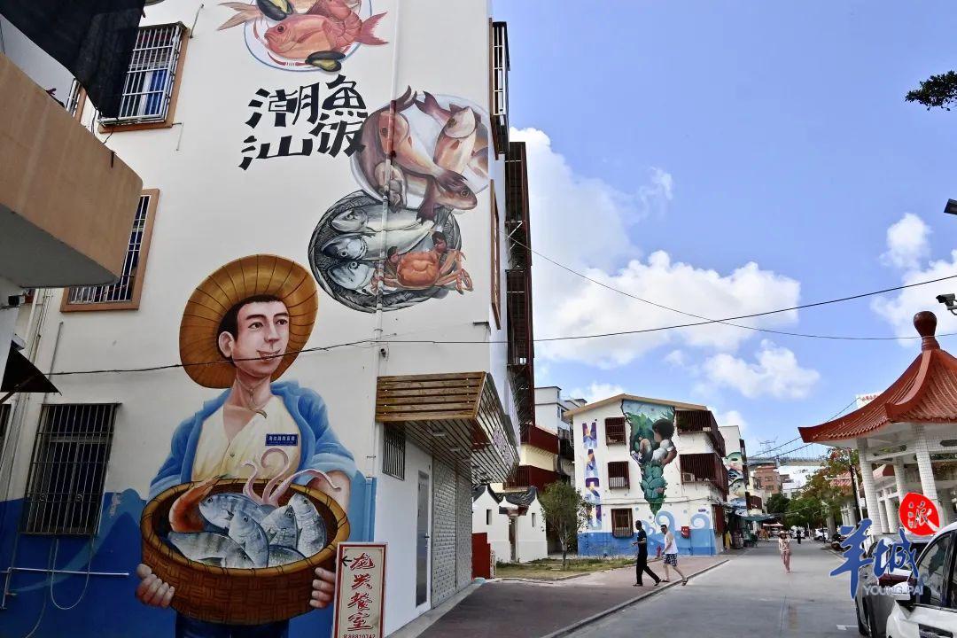 汕頭媽嶼社區(qū)內(nèi)的建筑以海濱風(fēng)物、潮汕民俗等主題墻繪作為裝飾。龍騰街道供圖