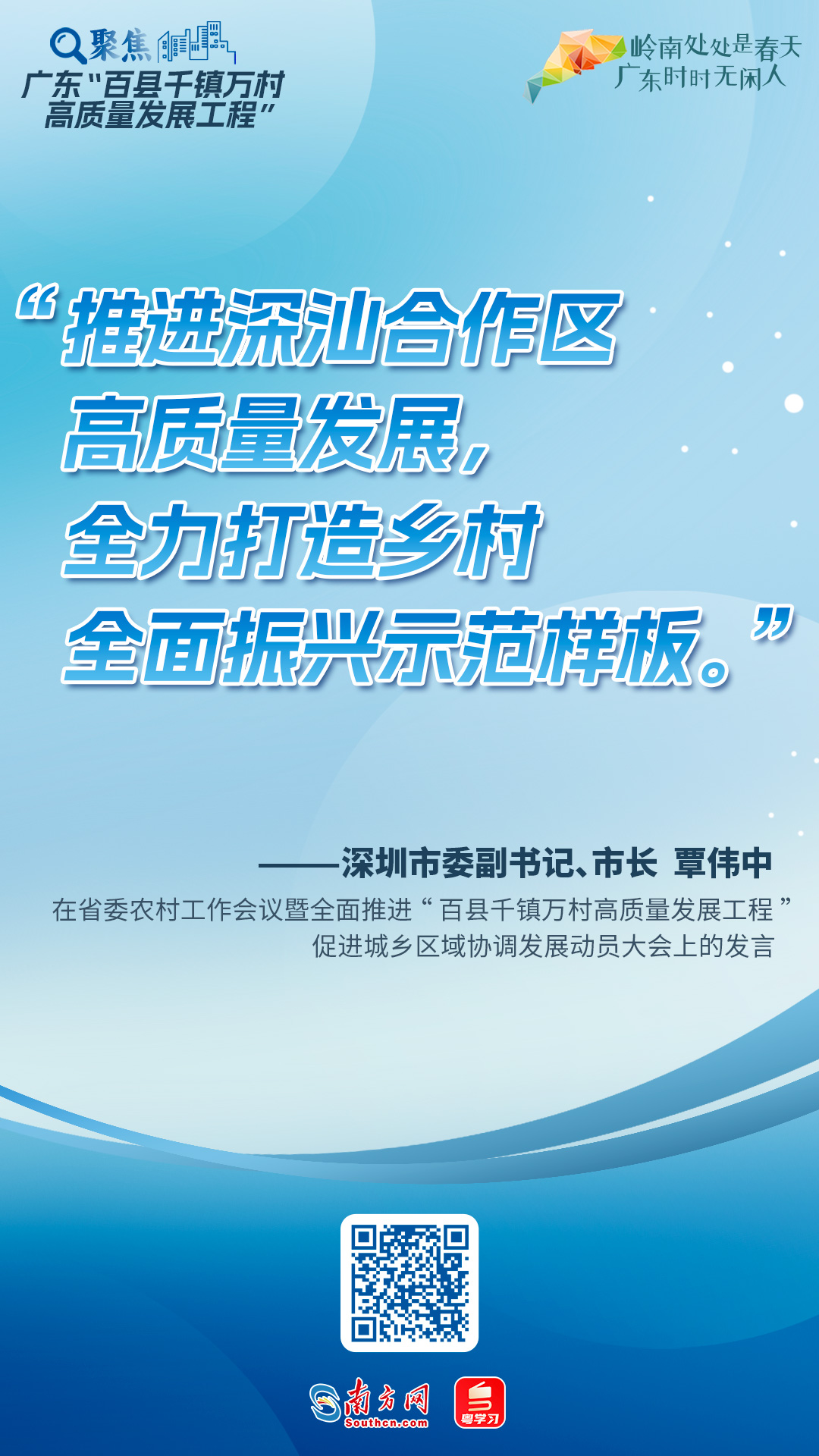 深圳市委副書記、市長覃偉中表示,深圳以深汕合作區(qū)為主陣地,以省內(nèi)協(xié)作為主渠道,加快打造城鄉(xiāng)區(qū)域協(xié)調(diào)發(fā)展的生動范例,努力在推動全省實現(xiàn)高質(zhì)量發(fā)展中先行示范、貢獻力量。