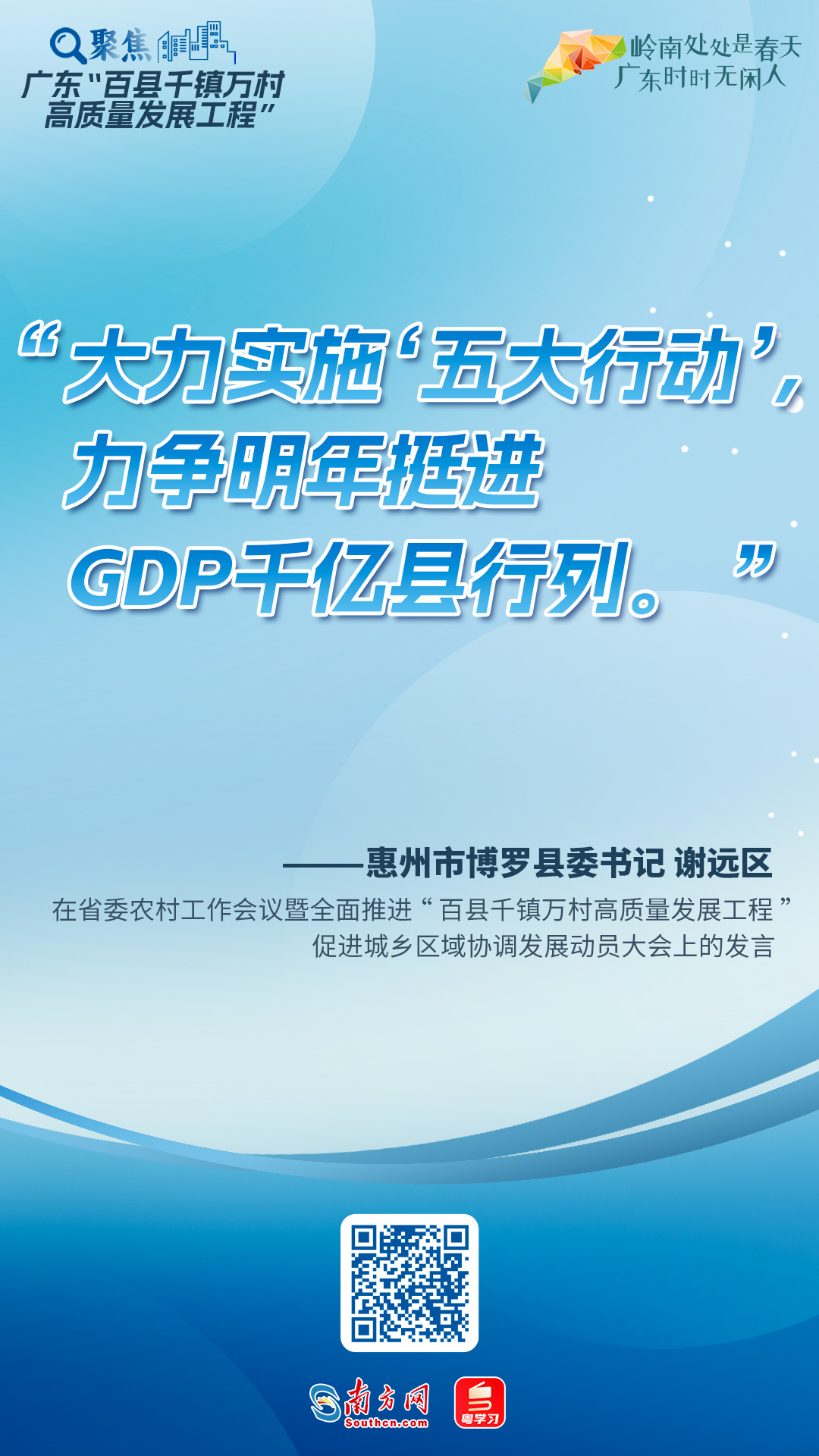 惠州市博羅縣委書記謝遠區(qū)表示,博羅縣將深入貫徹落實黨的二十大精神,全面落實省委決策部署,堅持制造業(yè)當家,大力實施“五大行動”,奮力譜寫縣域振興新篇章,力爭今年GDP突破900億元、明年挺進GDP千億縣行列、后年進入全國百強縣65位左右。
