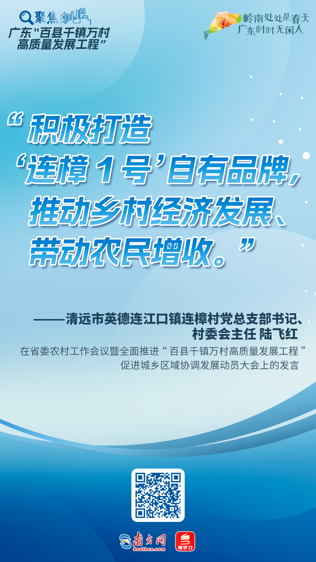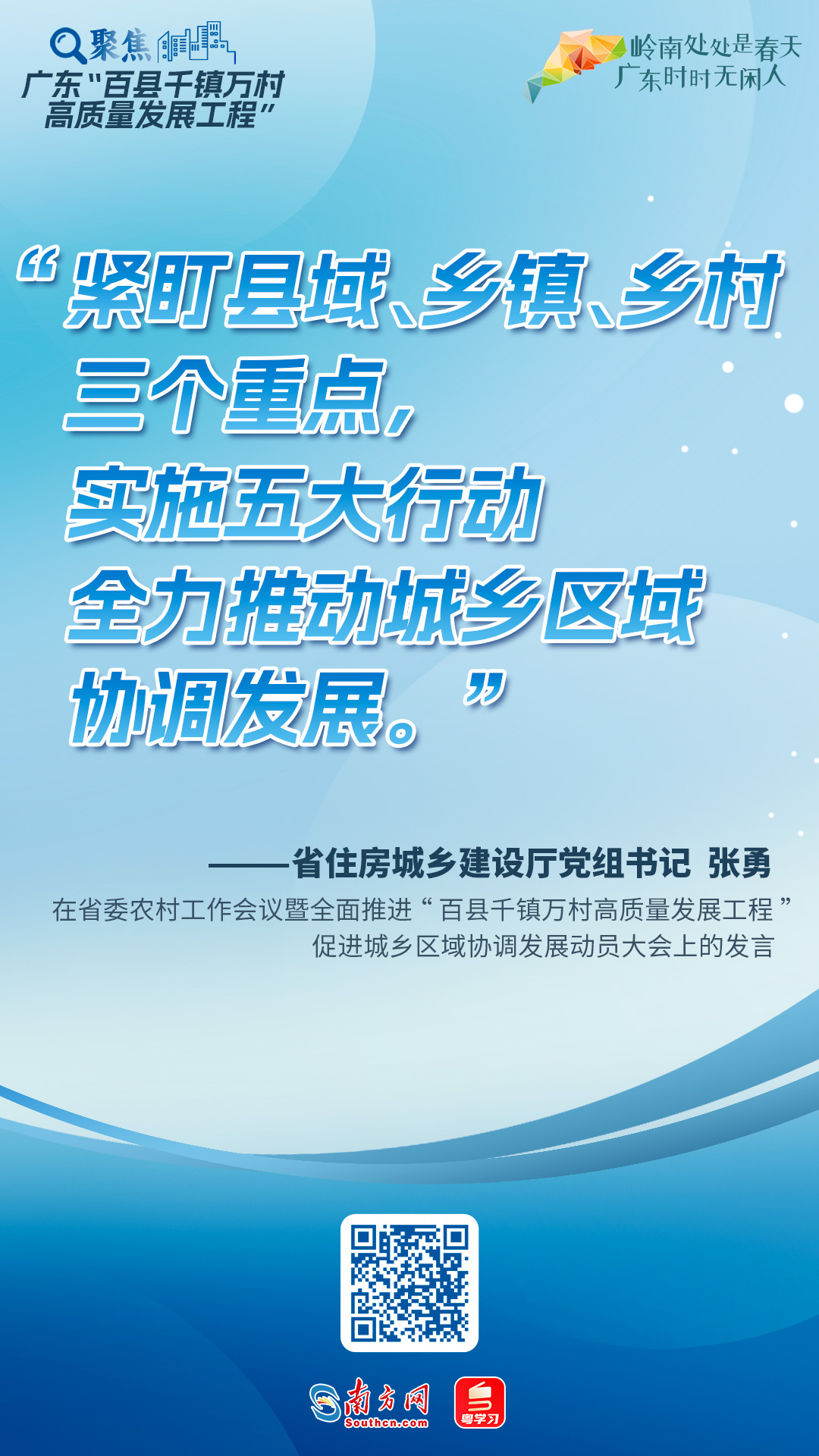 南方網(wǎng)訊 2月13日,廣東召開省委農(nóng)村工作會議暨全面推進“百縣千鎮(zhèn)萬村高質(zhì)量發(fā)展工程”促進城鄉(xiāng)區(qū)域協(xié)調(diào)發(fā)展動員大會。會上,多位與會代表發(fā)言表態(tài),為廣東百縣千鎮(zhèn)萬村高質(zhì)量發(fā)展出實招,助力廣東“三農(nóng)”工作和城鄉(xiāng)區(qū)域協(xié)調(diào)發(fā)展邁上新臺階。