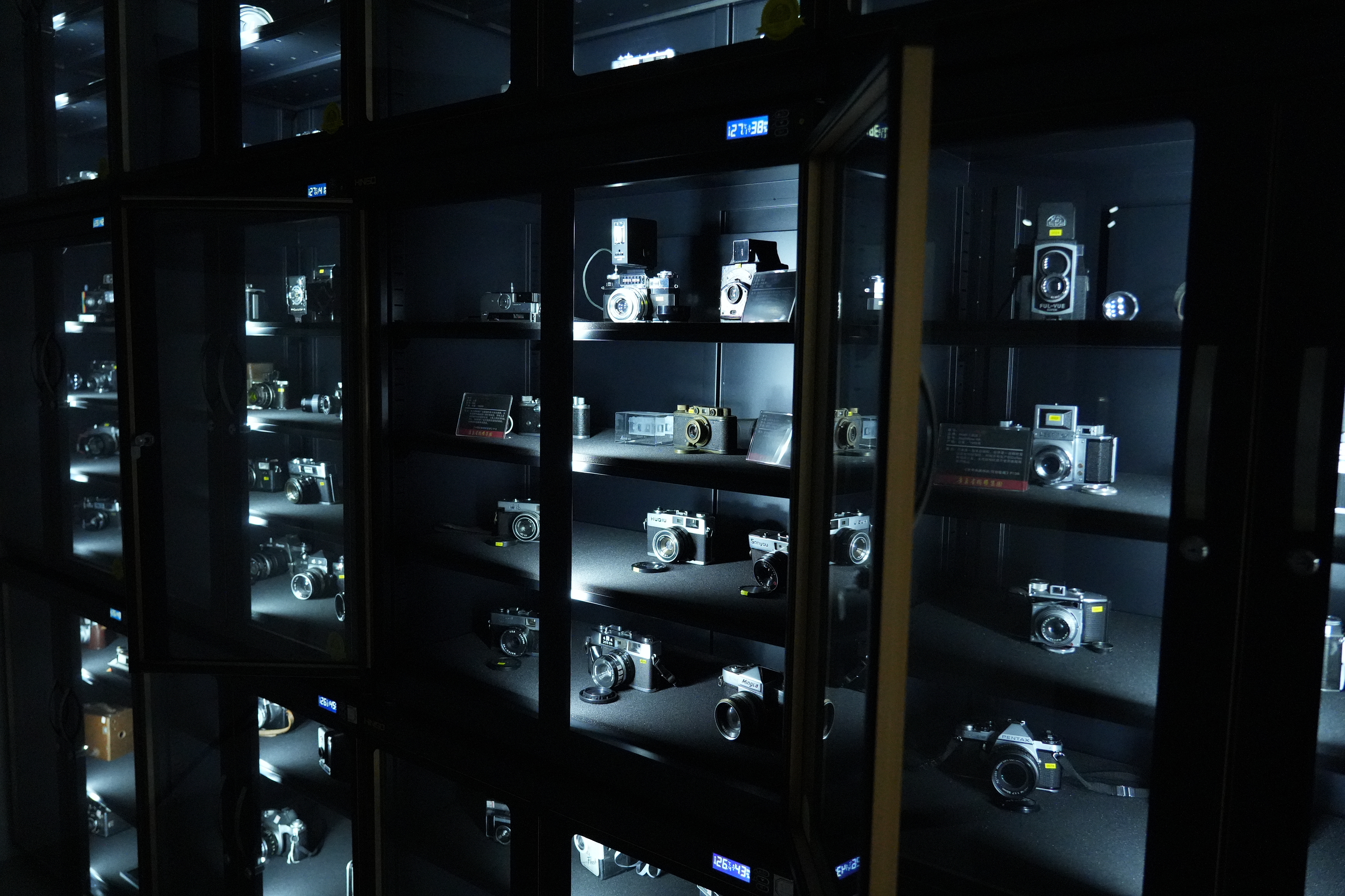 收集不易,南方潮濕的天氣,也讓相機(jī)的維護(hù)成本變高。為了更好地保護(hù)自己的“寶貝們”,陳橋頓特地定制了有溫度和濕度控制的柜子進(jìn)行保存,讓相機(jī)陳列柜的溫度常年保持在26.5℃,濕度保持在47%。