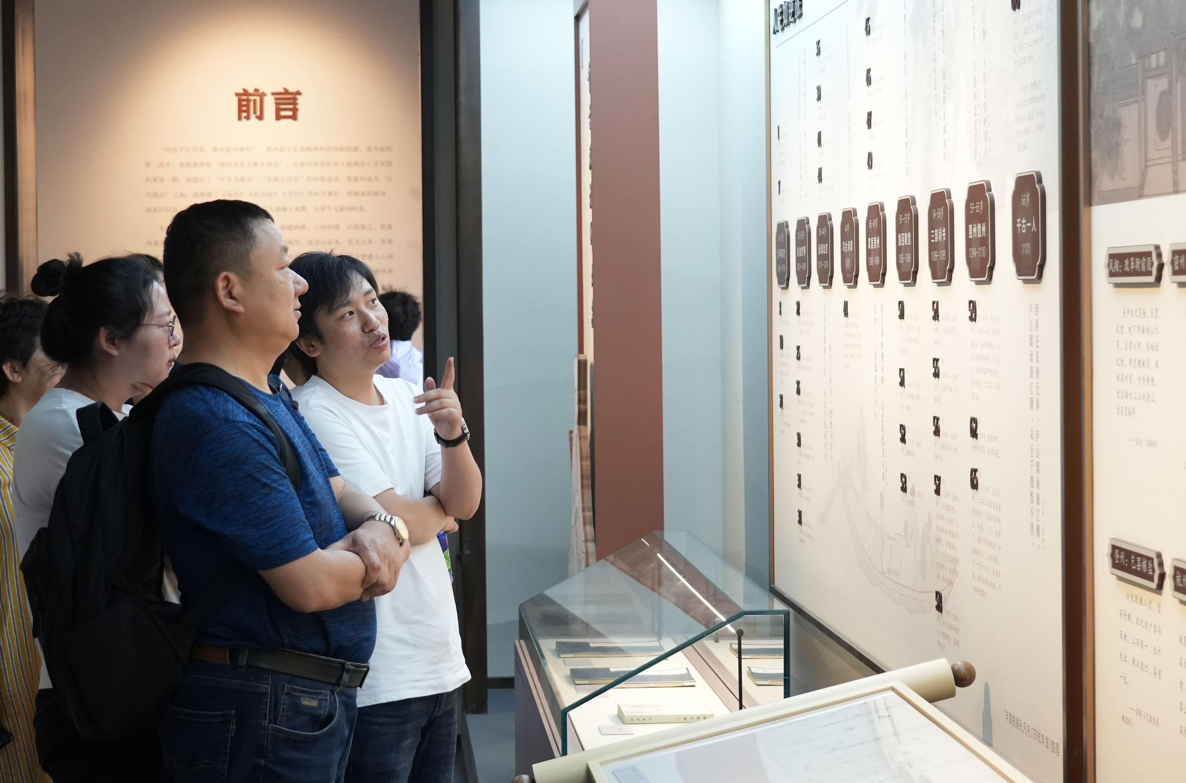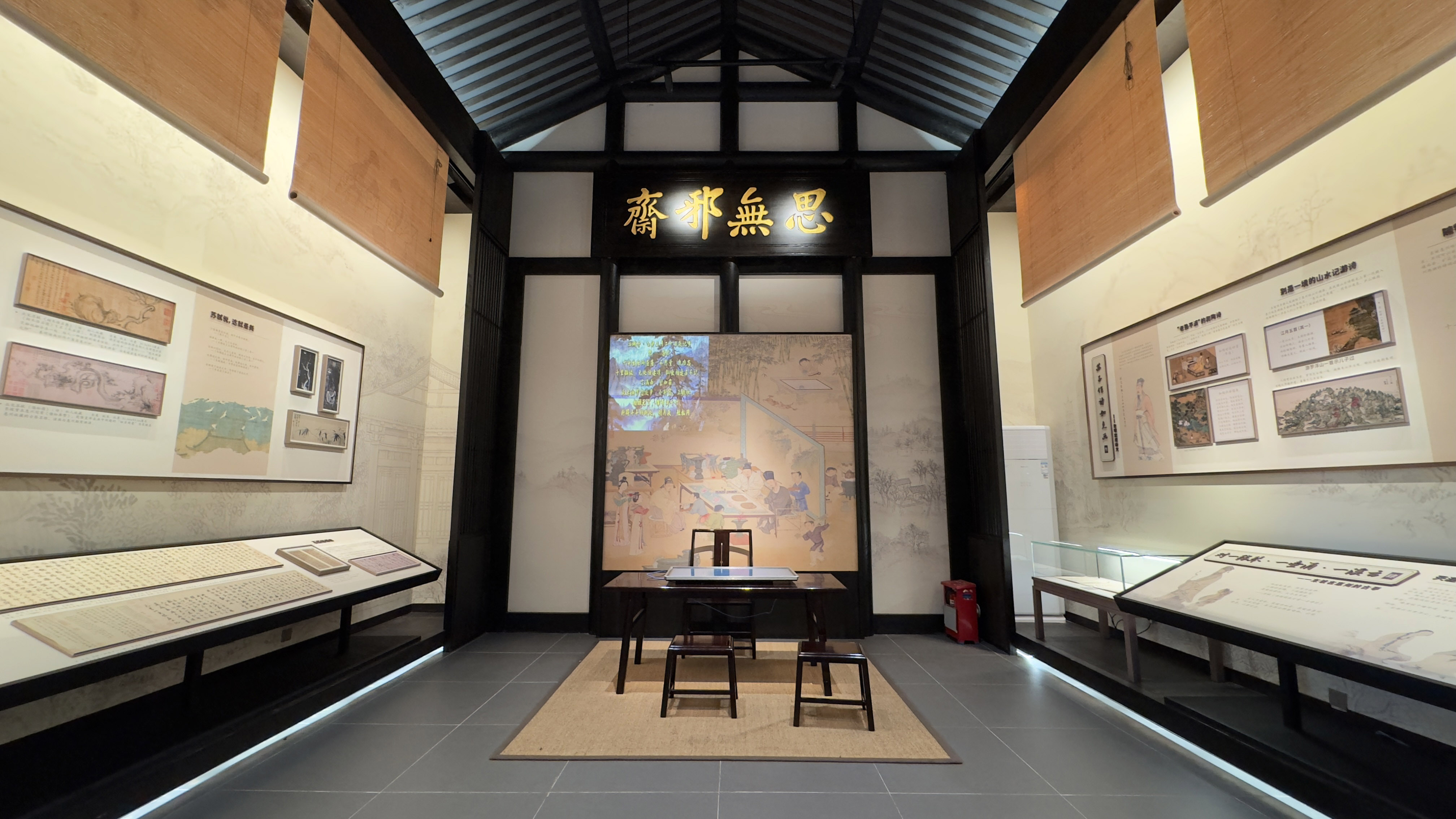 二展廳位于原館一館,這棟仿古建筑明亮通暢,外形古雅雄麗,莊重大方。該展廳以“不妨詩酒樂年華”為主題,通過書、畫、詩、琴、酒、茶,展示東坡緣何“不辭長作嶺南人”。走進這個展廳,可以全面了解蘇東坡寓惠的生活細節(jié),游客可以在東坡啖荔雕塑前與東坡“對飲”合影、打卡拍照,可以在東坡家宴展區(qū),“品味”美食家蘇東坡的飲食之道,更可以一覽蘇東坡在惠州如何寫詩作畫、快意江湖。正如展廳資料介紹,惠州的歲月給了東坡生活上更多的閑暇,他因緣自適,把“寓居”過成了“仙居”,既有書畫詩酒茶,亦不失人間煙火氣,從詩情畫意里感受萬物樂趣,在三餐茶飯里品出絕妙風味。