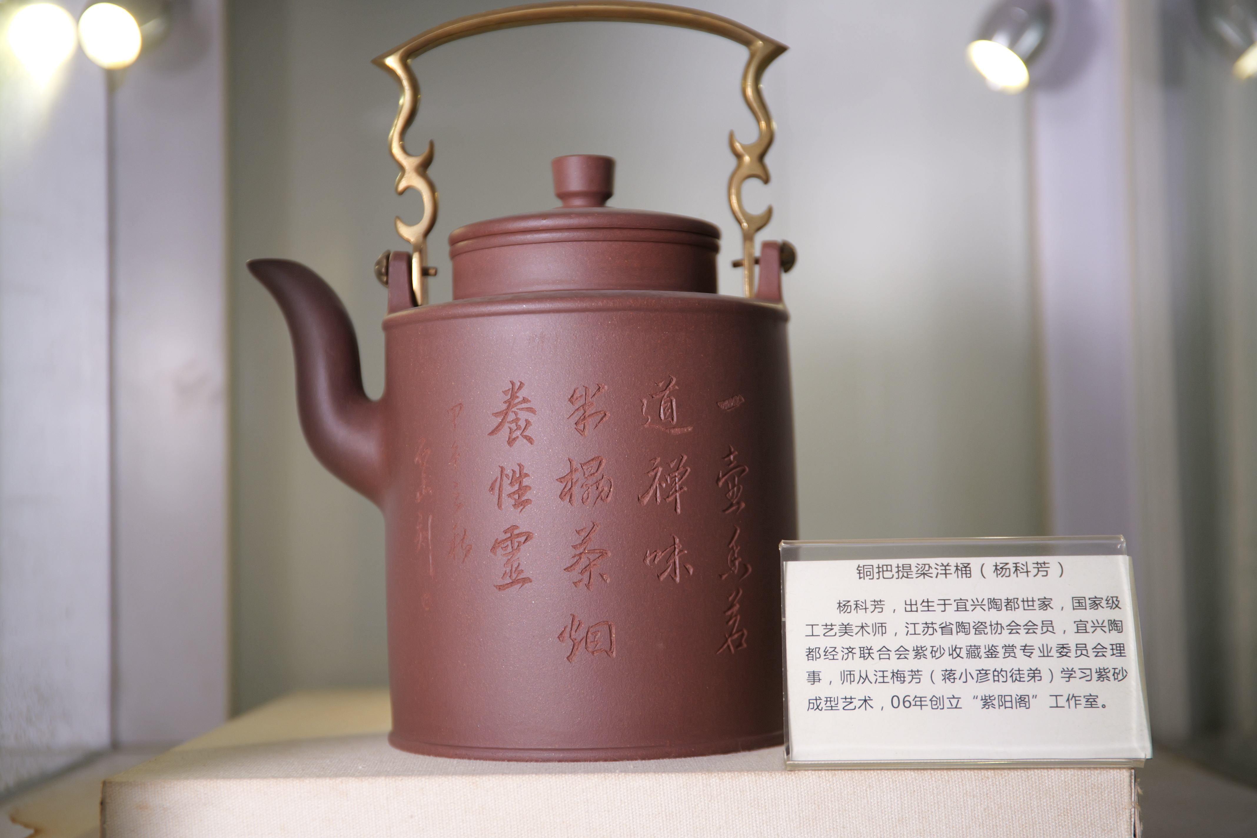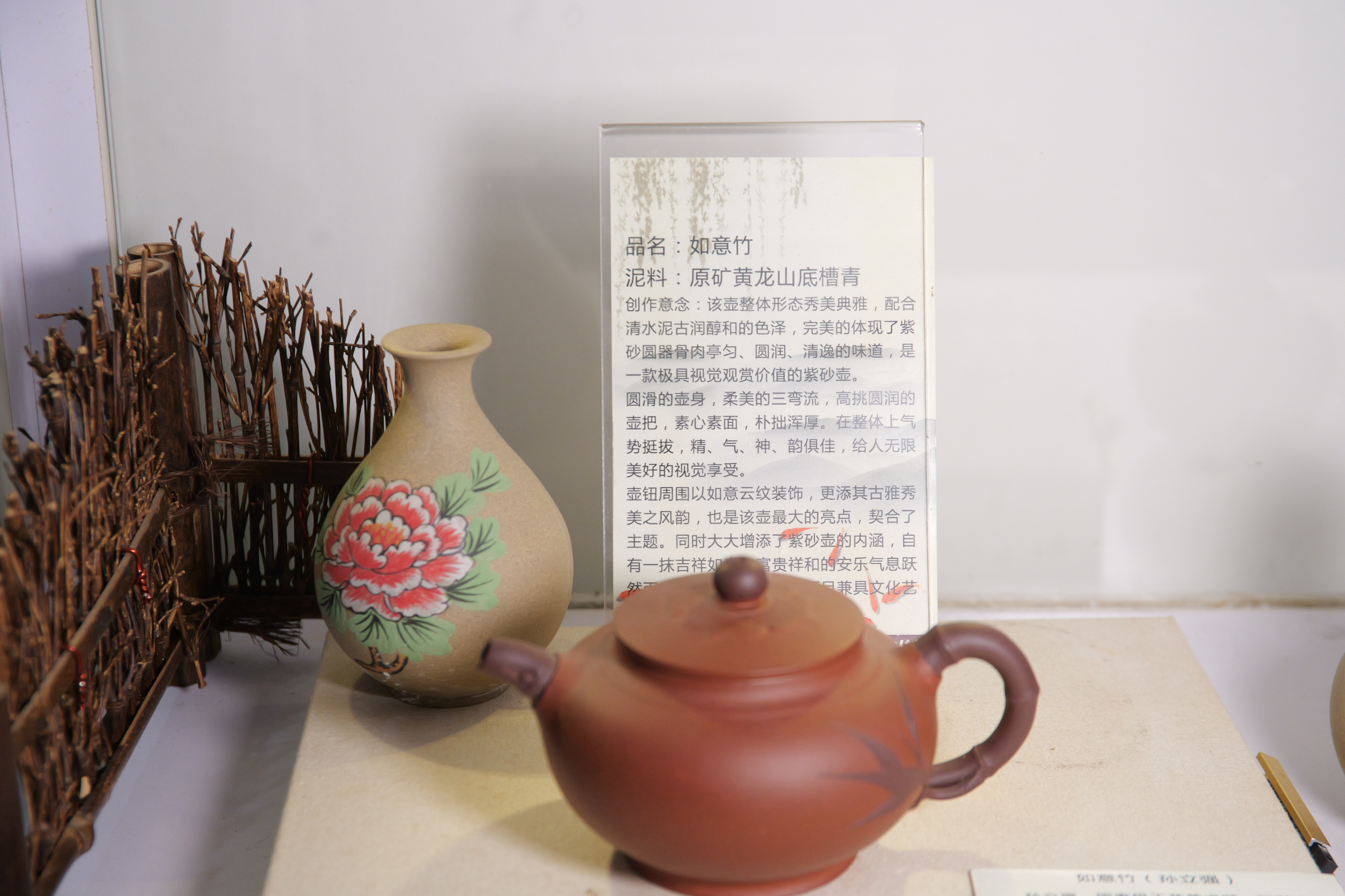 市民游客來(lái)到這里,猶如闖入一個(gè)藝術(shù)世界,可以把盞品茗,亦可以把玩紫砂壺,還可以摩挲其他諸如人物雕像、植物塑形等各式紫砂文創(chuàng)產(chǎn)品,在紫砂雕塑、金石、書法、繪畫、篆刻等藝術(shù)中感受中華優(yōu)秀傳統(tǒng)文化的熏陶和滋養(yǎng)。