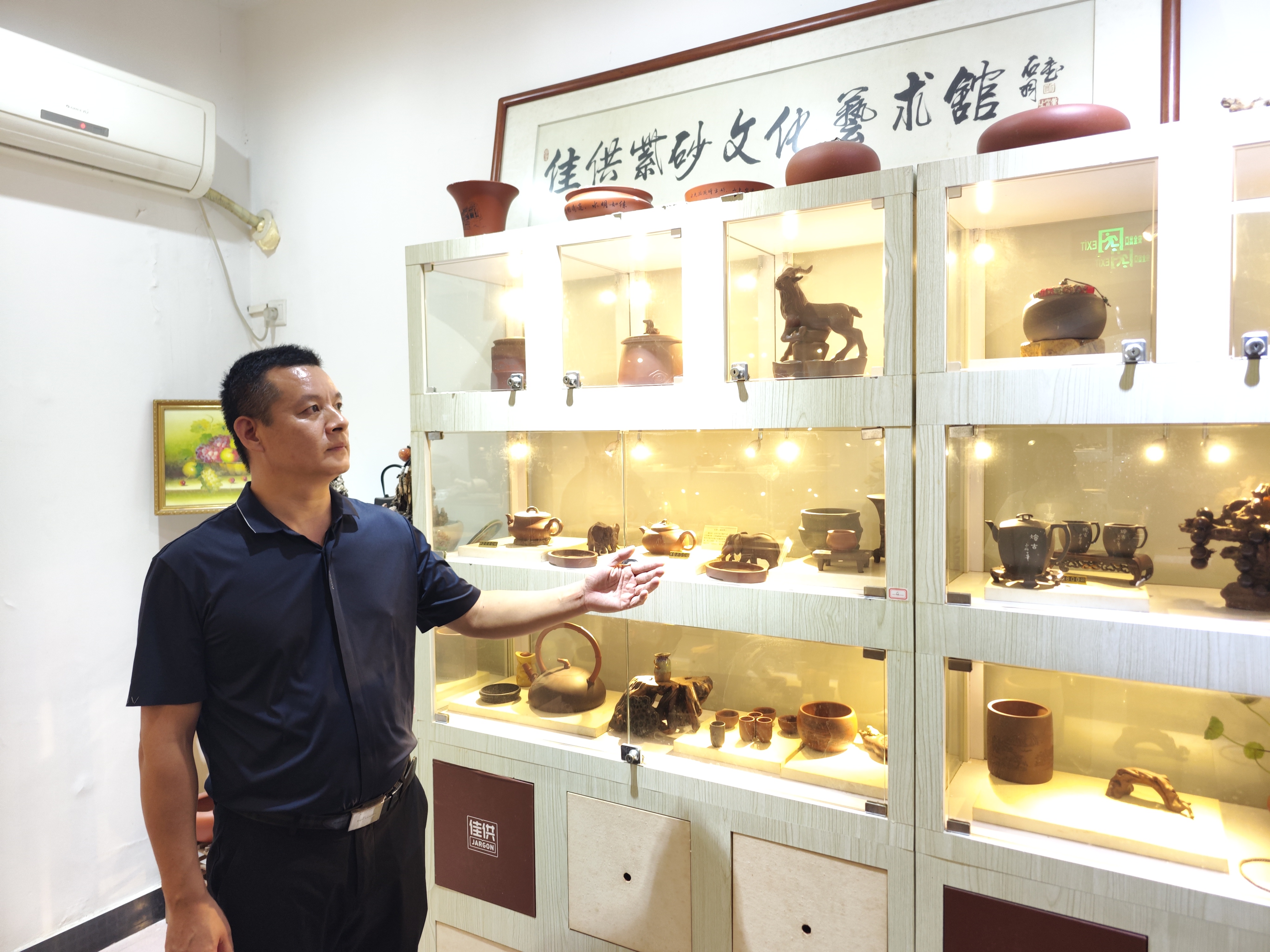 談起建設(shè)佳供紫砂文化藝術(shù)館的緣由,佳供紫砂文化藝術(shù)館負(fù)責(zé)人、惠州市神怡紫砂藝術(shù)研究社社長(zhǎng)陳旭表示,他在平時(shí)生活工作中喜歡喝茶,早年也賣過(guò)茶葉,在此過(guò)程中,他接觸到宜興紫砂壺,被其深刻內(nèi)涵和文化底蘊(yùn)迷住,于是開始研究和收藏紫砂壺。