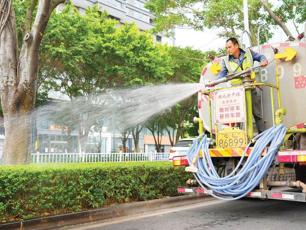 惠州市民公園占地面積9萬平方米,綠化面積2.58萬平方米,是惠州最大的供市民休閑活動(dòng)的場所。每天清晨7時(shí),來自市城投城市生態(tài)科技有限公司的養(yǎng)護(hù)工何尚件都會(huì)穿梭在云山西路,為道路兩旁以及公園內(nèi)的綠植澆水和修剪等。