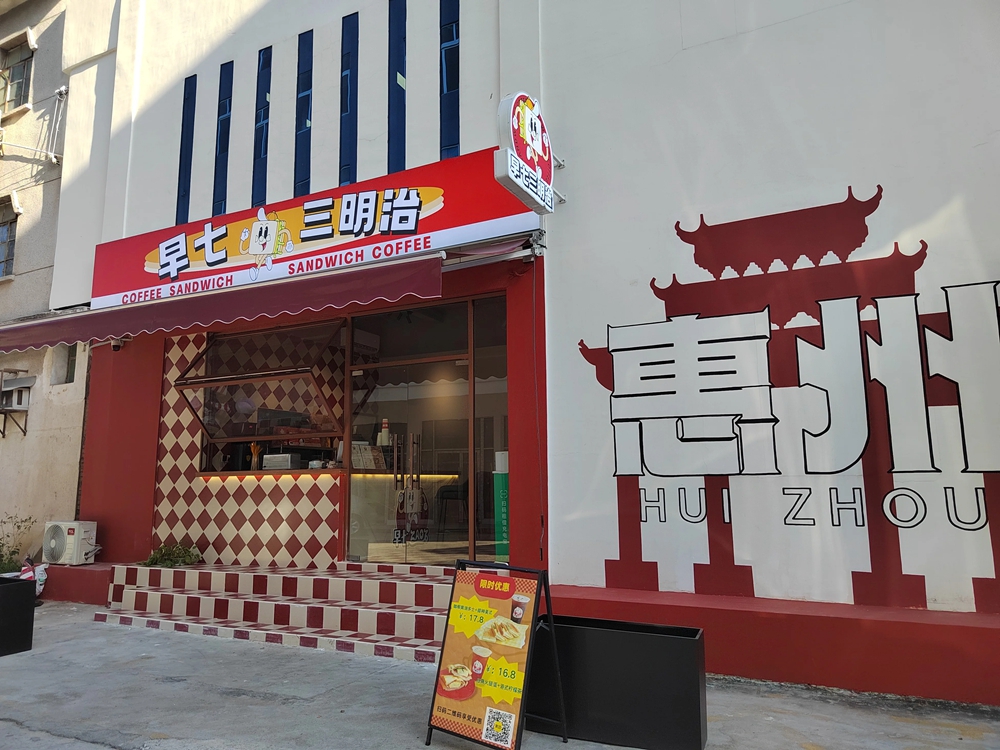 記者采訪當(dāng)天,適逢入駐產(chǎn)業(yè)園的“嘆咖啡”開門迎客,這里原是老廠房的大門保安亭,設(shè)計(jì)改造為時(shí)尚咖啡廳!皣@咖啡”負(fù)責(zé)人方耿介紹,“嘆咖啡”是惠州本土咖啡店,創(chuàng)立于2015年,他看到祝屋巷和產(chǎn)業(yè)園日益高漲的人氣,希望讓更多人知道惠州也有好喝的咖啡。