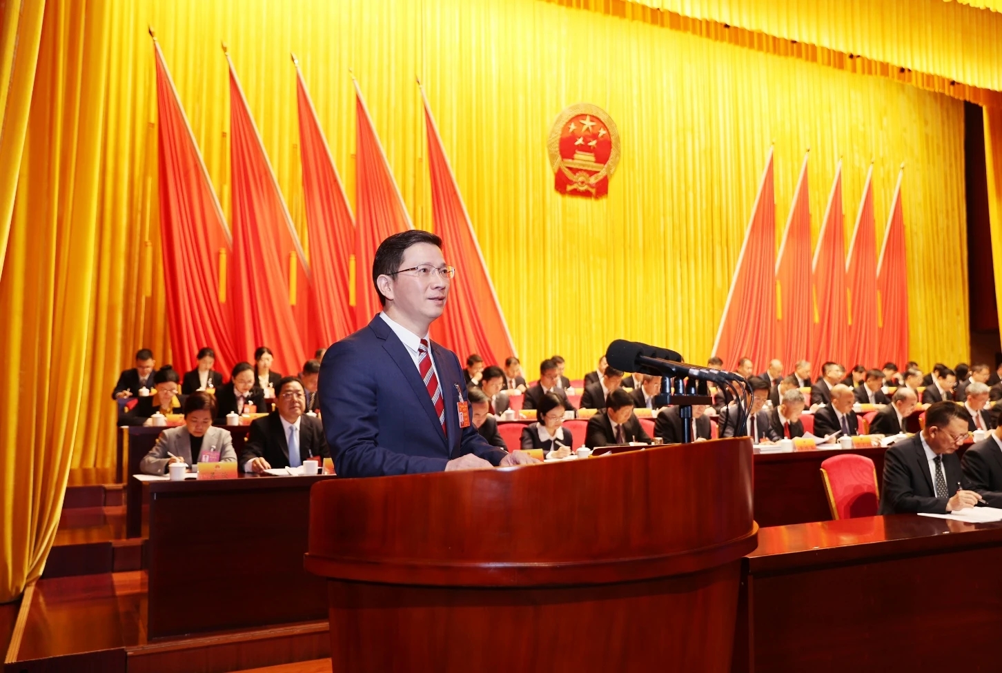 溫金榮向大會(huì)作政府工作報(bào)告。
