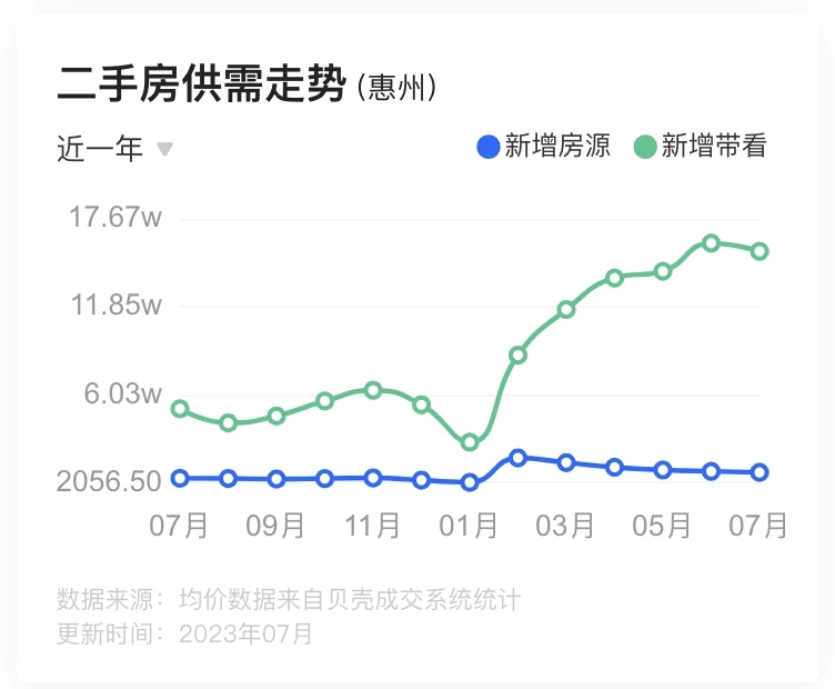 具體到惠州,限售政策“3改1”的調(diào)整在促進二手房市場活躍的同時,也加速了不少業(yè)主的出售計劃,二手房掛牌量明顯上漲。據(jù)貝殼官網(wǎng)數(shù)據(jù)顯示,截至2023年7月18日,惠州二手房掛牌量已高達74660套。在此情況下,關(guān)于“惠州業(yè)主大量拋售二手房”的傳言甚囂塵上,引起強烈反響。那么,實際情況到底如何?我們深入市場一線,一探惠州二手樓市的真實現(xiàn)狀。