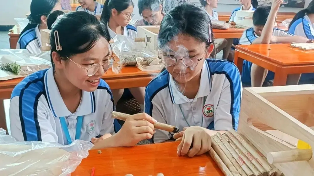 中醫(yī)藥文化進(jìn)校園:博羅縣第二中學(xué)學(xué)生學(xué)習(xí)艾灸。