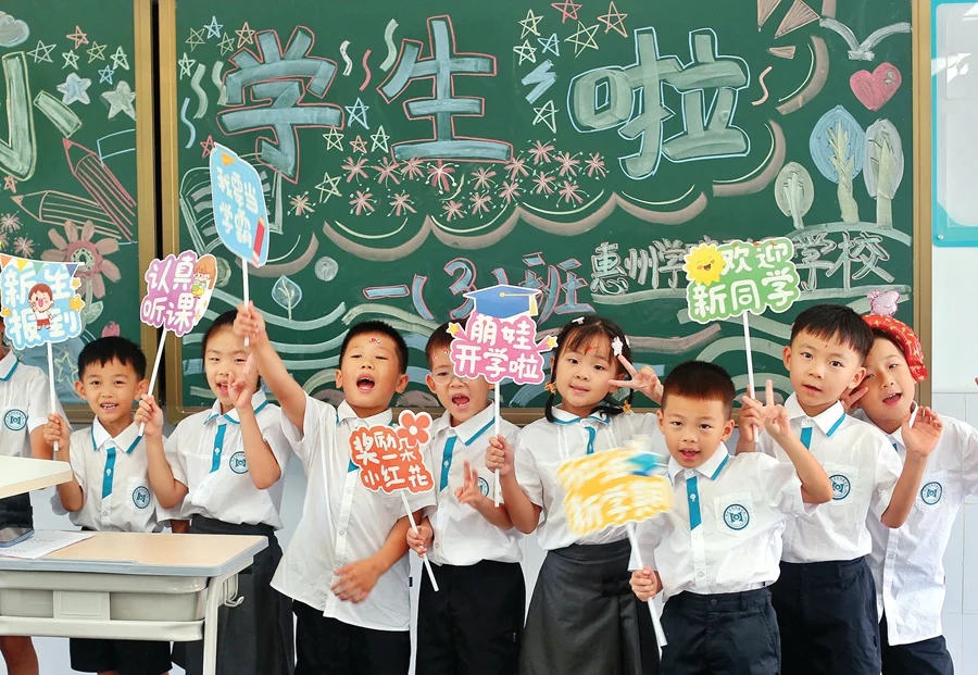 課桌上插上了紅氣球,還有棒棒糖、旺仔牛奶、蛋糕……不明就里的還以為是哪家豪橫地在開(kāi)生日派對(duì),殊不知這是開(kāi)學(xué)課堂里的場(chǎng)景。