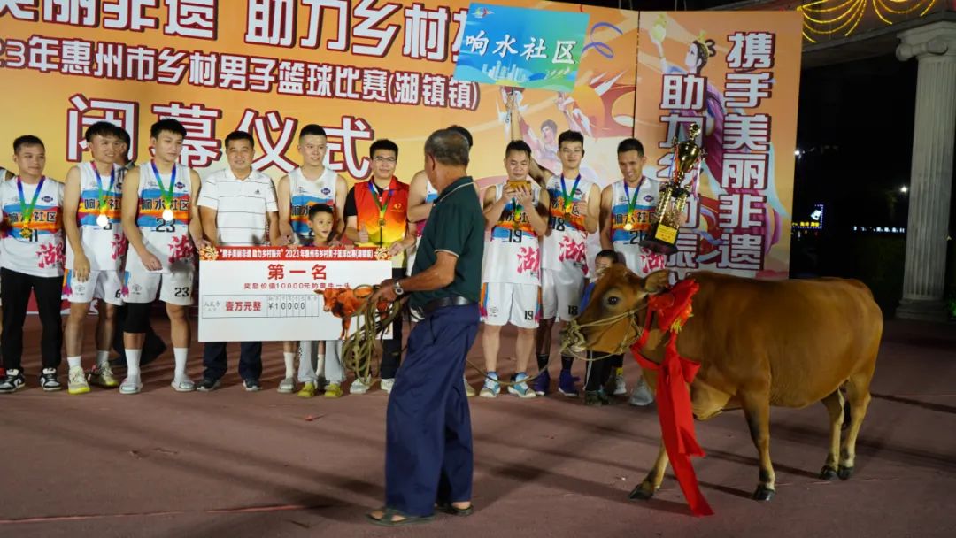 近段時(shí)間,“村BA”成為惠州鄉(xiāng)村一大盛事!皵y手美麗非遺 助力鄉(xiāng)村振興”2023年惠州市鄉(xiāng)村男子籃球賽在各縣(區(qū))開展了選拔賽,現(xiàn)場氛圍火爆,頒獎(jiǎng)環(huán)節(jié)更是吸睛:博羅湖鎮(zhèn)選拔賽的冠軍獲得健壯的黃牛一頭,黃牛在現(xiàn)場“走秀”一圈,憨態(tài)可掬;龍門龍?zhí)锕、亞、季軍的?jiǎng)品,不僅有龍?zhí)镦?zhèn)兩大省級(jí)現(xiàn)代農(nóng)業(yè)產(chǎn)業(yè)園的絲苗米、胡須雞活雞,還有在當(dāng)?shù)厥卟朔N植基地剛采摘下來的大冬瓜、西瓜等,可謂是村味十足、“土”得地道。