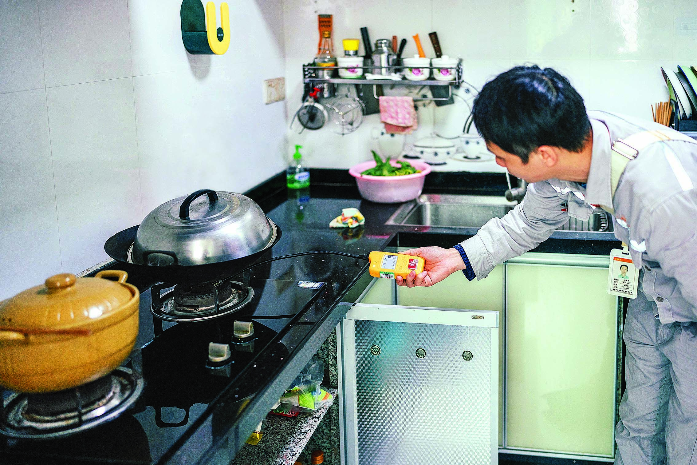 惠州燃?xì)夤ぷ魅藛T開展入戶安檢;葜輺|江圖片社供圖