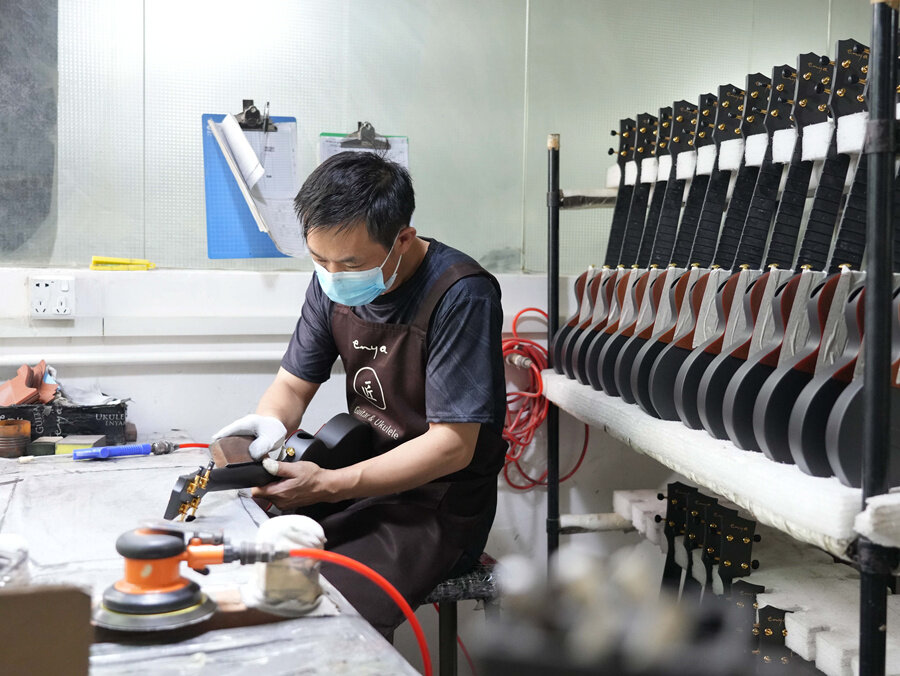 上世紀(jì)90年代臺(tái)商帶來(lái)的吉他產(chǎn)業(yè),在這里成長(zhǎng)壯大。最高峰時(shí),秋長(zhǎng)擁有近200家吉他制造相關(guān)企業(yè),生產(chǎn)出全國(guó)2/5、全球1/5的吉他和全球7成的尤克里里,行業(yè)總產(chǎn)值達(dá)10億元。