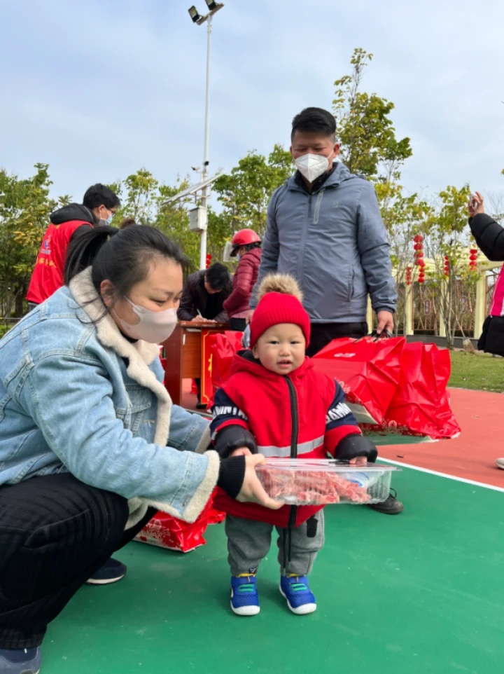 小寶寶手捧豬肉,愛(ài)不釋手。為讓村民更加深刻地感受到鄉(xiāng)村振興帶來(lái)的好處,在春節(jié)來(lái)臨之際,金星村組織開(kāi)展此次分豬肉活動(dòng),一方面給村民送新春福利,另一方面通過(guò)這一富有儀式感的活動(dòng),鼓勵(lì)村民繼續(xù)積極支持、參與鄉(xiāng)村振興,一起創(chuàng)造更加美好的生活。
