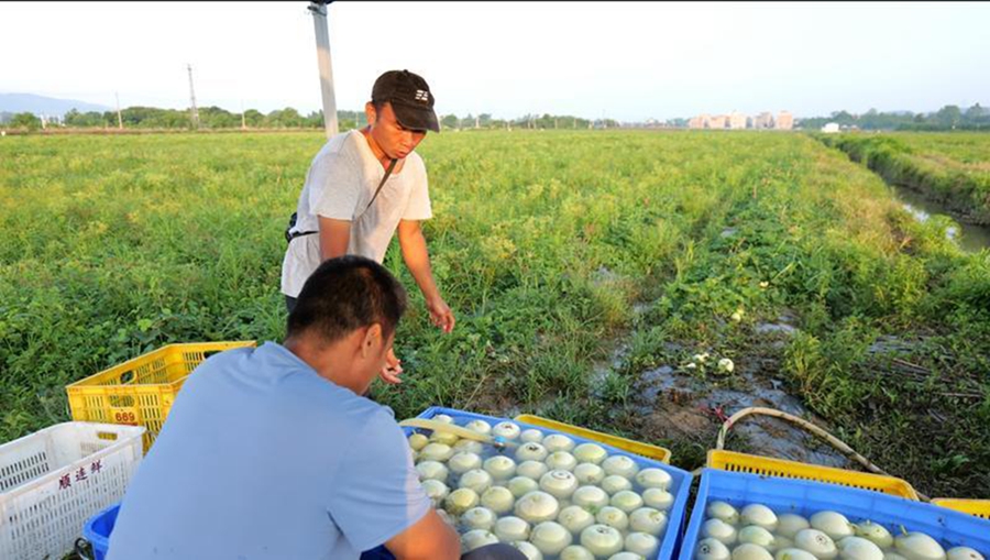 中午11時許,采收工作已經(jīng)持續(xù)了5個多小時,看著基地轉(zhuǎn)運場堆如小山的白香瓜,李院樂擼起衣角,擦了擦滿臉的大汗,坐在三輪車上和記者聊起了往事!拔沂2006年從部隊退役的,退役后去珠海的商超做過一段時間生鮮果蔬的供應(yīng)鏈經(jīng)理,積累了一些工作經(jīng)驗后,2015年自己出來創(chuàng)業(yè),做生鮮果蔬的供應(yīng)鏈管理和相關(guān)的電商發(fā)貨!崩钤簶氛f,隨著鄉(xiāng)村振興戰(zhàn)略的實施,這些年農(nóng)村變化很大,農(nóng)村的經(jīng)營模式轉(zhuǎn)變也很大,以前是憑借自己的經(jīng)驗種,然后等中間商上門收購,質(zhì)量價格都難有保障,F(xiàn)在隨著“百千萬工程”的實施,很多農(nóng)村開始抱團發(fā)展,不少村都有了自己的合作社,也開始有了建立農(nóng)產(chǎn)品品牌的意識。