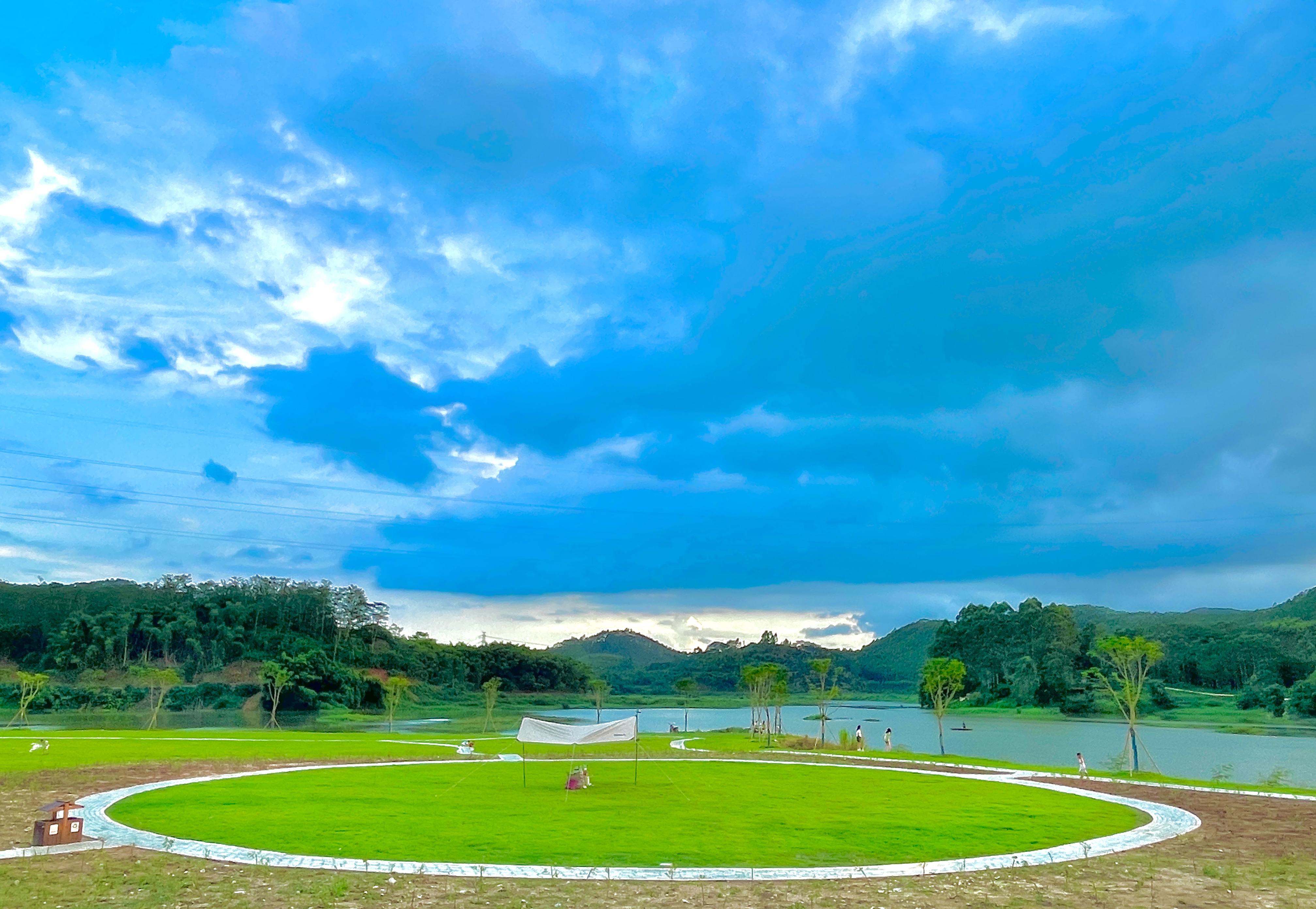 站在綠油油的草地上,放眼望去,碧波微瀾,顯崗水庫的旖旎風(fēng)光一覽無余,讓人心曠神怡。這里便是老圩村的濱水公園,腳下是綠意蔥蘢的草地,前方是水天一色的自然美景,這里逐漸新晉成為橫河網(wǎng)紅打卡點(diǎn)。村民張伯說:“傍晚來這里吹吹晚風(fēng),特別舒服!