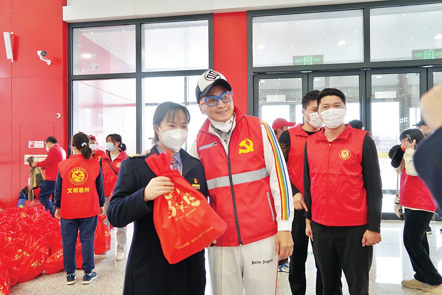 “惠州感謝你,辛苦了,送份小禮物給你!薄耙宦菲桨玻履昕鞓!”“紅紅的圍巾送給你,帶著這份溫暖回家!薄盎葜菪枰銈儯(jié)后再來惠州哦。”1月11日下午,贛深高鐵惠州北站的不少旅客收到一份“愛心大禮包”。當(dāng)天,由市委宣傳部、市志愿服務(wù)聯(lián)合會(huì)主辦的“惠州有禮,平安回家”春運(yùn)志愿服務(wù)活動(dòng)在此舉行,志愿者送出的一份又一份禮包,溫暖了一個(gè)又一個(gè)歸家的人,也讓惠州這座全國文明城市多了幾分溫情。