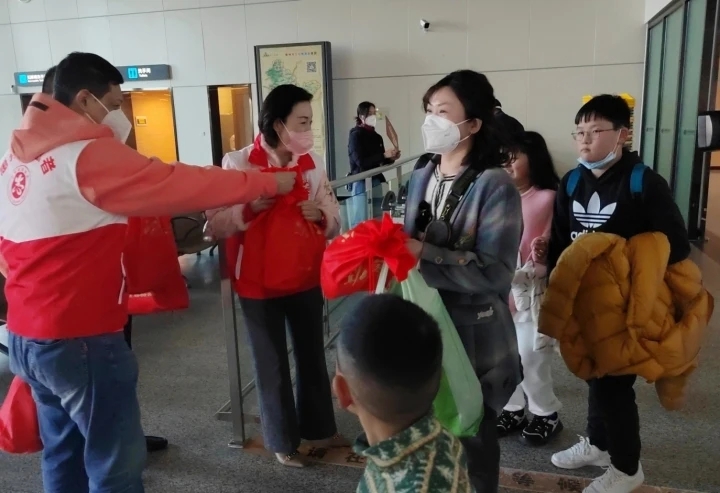 “山海惠州歡迎你!”“這是惠州手信福袋,祝你在惠州旅游愉快!”1月24日,大年初三,下午2點(diǎn)40分許,ZH9711航班穩(wěn)穩(wěn)地降落在惠州機(jī)場(chǎng)。100余名旅客抵達(dá)惠州、魚(yú)貫而出。市文廣旅體局、市旅游協(xié)會(huì)有關(guān)負(fù)責(zé)人和文明旅游志愿者們,一邊熱情地為游客送上新春祝福,一邊贈(zèng)送紅彤彤的新年福袋,整個(gè)機(jī)場(chǎng)到達(dá)大廳洋溢著歡快的氣氛。