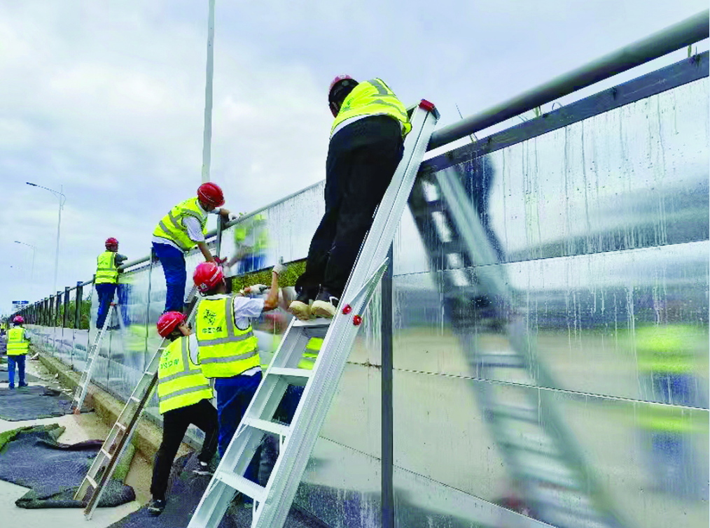 中海殼牌三期配套工程項(xiàng)目黨員先鋒隊(duì)、青年突擊隊(duì)帶頭拆卸圍擋防御臺(tái)風(fēng);葜萑?qǐng)?bào)記者匡湘鄂通訊員李少平 攝