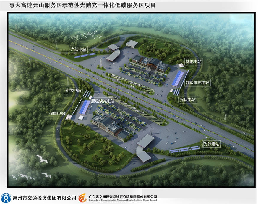 惠大高速元山服務(wù)區(qū)示范性光儲(chǔ)充一體化低碳服務(wù)區(qū)項(xiàng)目效果圖。 惠州日報(bào)記者湯渝杭 翻拍