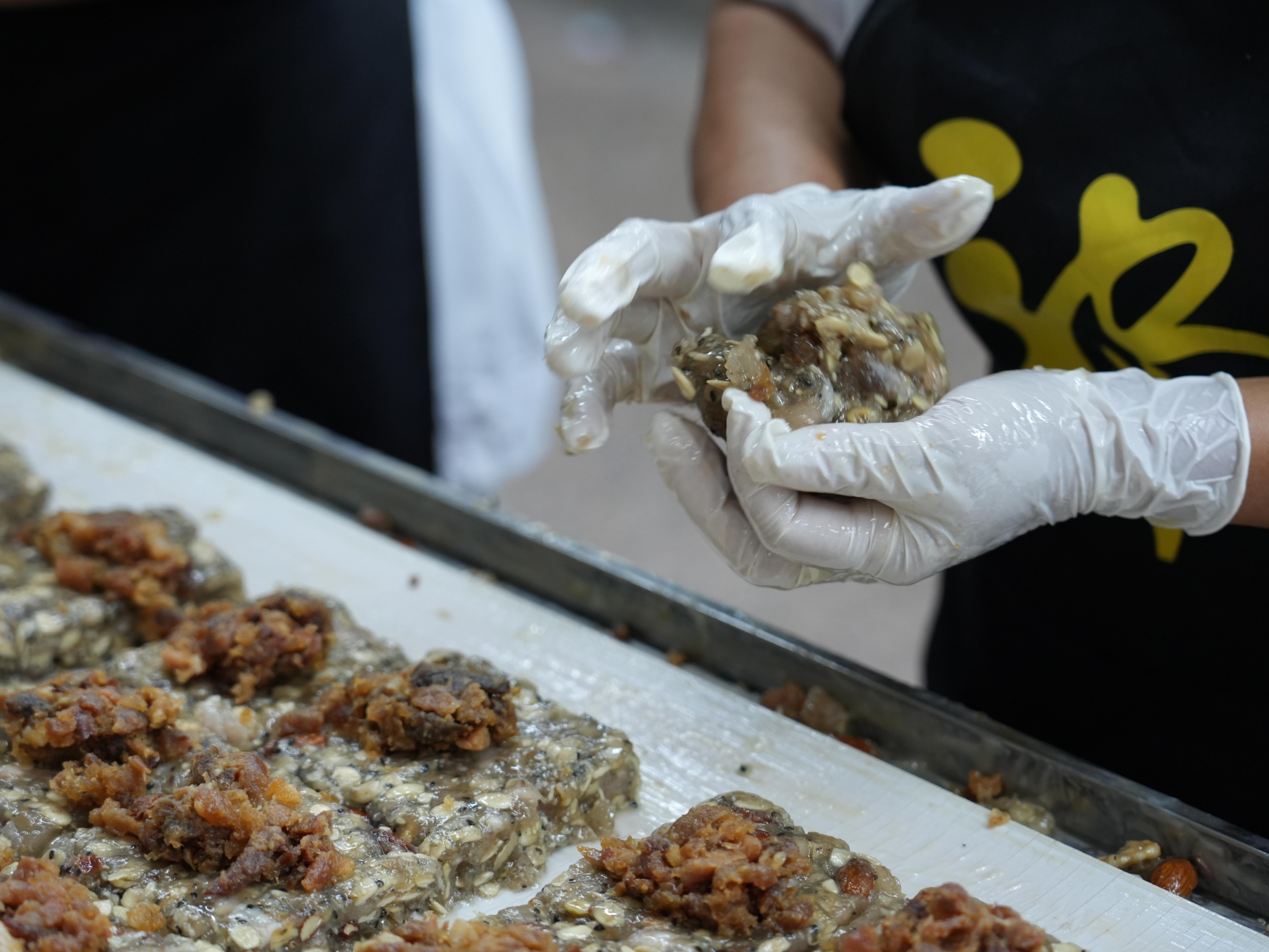 在郭漢光看來,成功的秘訣在于對傳統(tǒng)味道的堅(jiān)守。郭師傅堅(jiān)持采用新鮮純正的優(yōu)質(zhì)原料,原材料經(jīng)過嚴(yán)格選拔,例如選用純正地道的蒜香油、花生油,長期食用天然飼料的山區(qū)走地豬,杜絕一切化學(xué)合成香料。在月餅制作過程中,純手工包餅皮、揉餡等,保留傳統(tǒng)手工藝的溫度。
