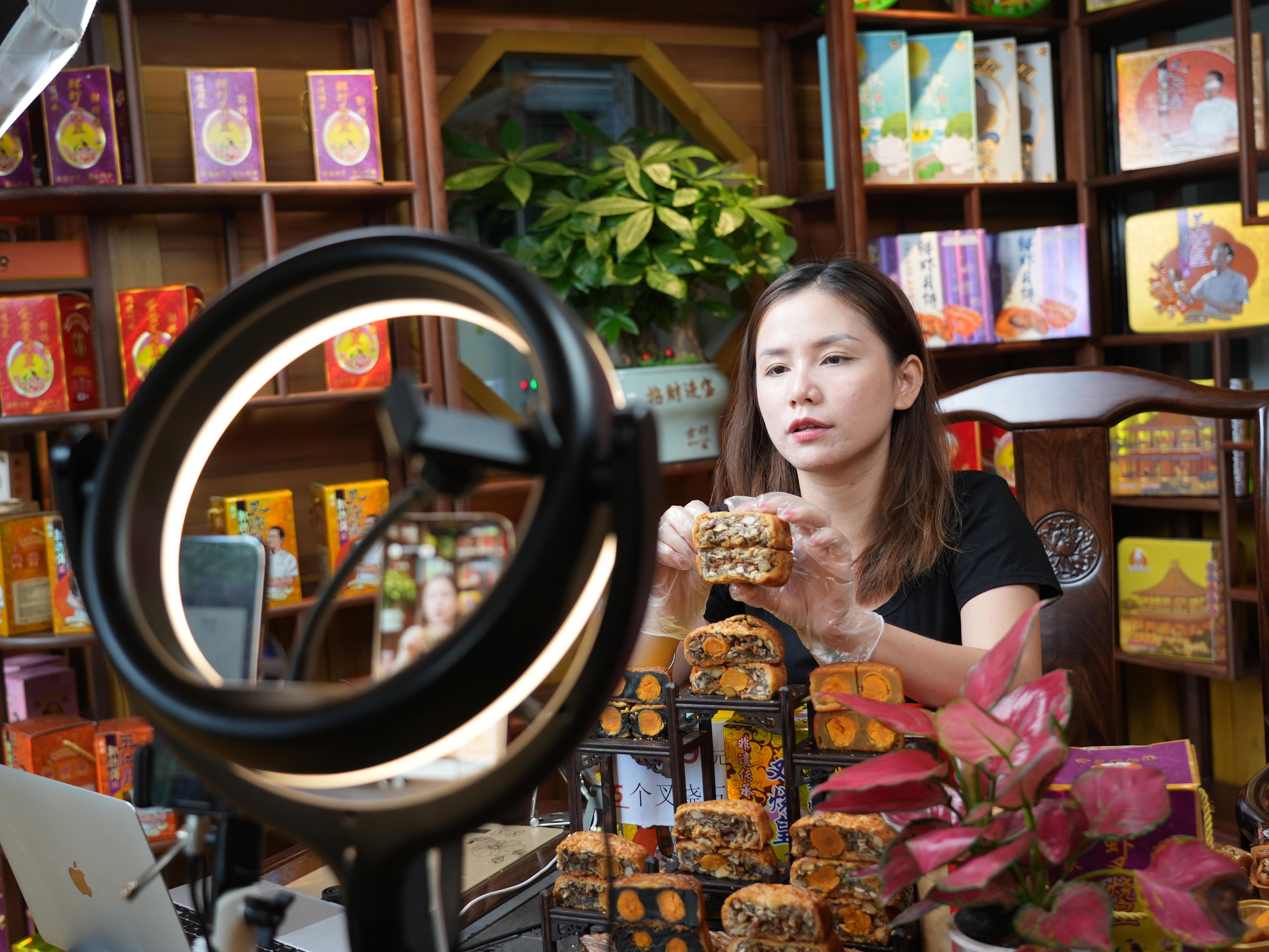 “把月餅做好了,還得跟上時(shí)代,跟潮流一起奔跑!睘榇,郭漢光把目光瞄準(zhǔn)現(xiàn)在年輕人喜愛的網(wǎng)絡(luò)平臺。從2008年開始,郭師傅積極拓展網(wǎng)絡(luò)銷售渠道,目前已進(jìn)駐天貓、淘寶、京東等網(wǎng)絡(luò)平臺,以及抖音等直播平臺。近年來,網(wǎng)絡(luò)平臺月餅銷量逐年增長。去年,郭師傅五仁類月餅在網(wǎng)絡(luò)平臺總銷售額達(dá)6000萬元,取得了全國月餅品牌銷量第二的好成績。