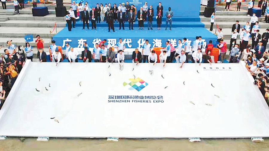 一批在惠東港口人工繁殖成功的全球極度瀕危物種黃唇魚(yú),躍入珠江口深圳灣海域,輕盈擺動(dòng)尾巴,游向大!诮衲5月深圳國(guó)際漁業(yè)博覽會(huì)漁業(yè)資源增殖放流現(xiàn)場(chǎng),我國(guó)首次放流黃唇魚(yú)。