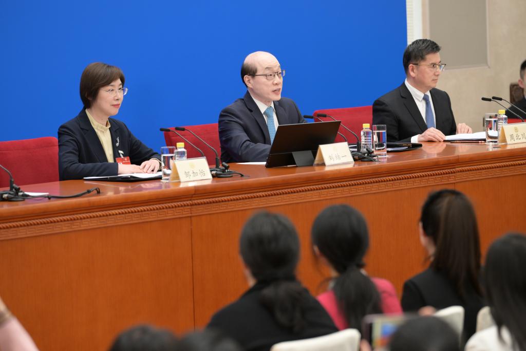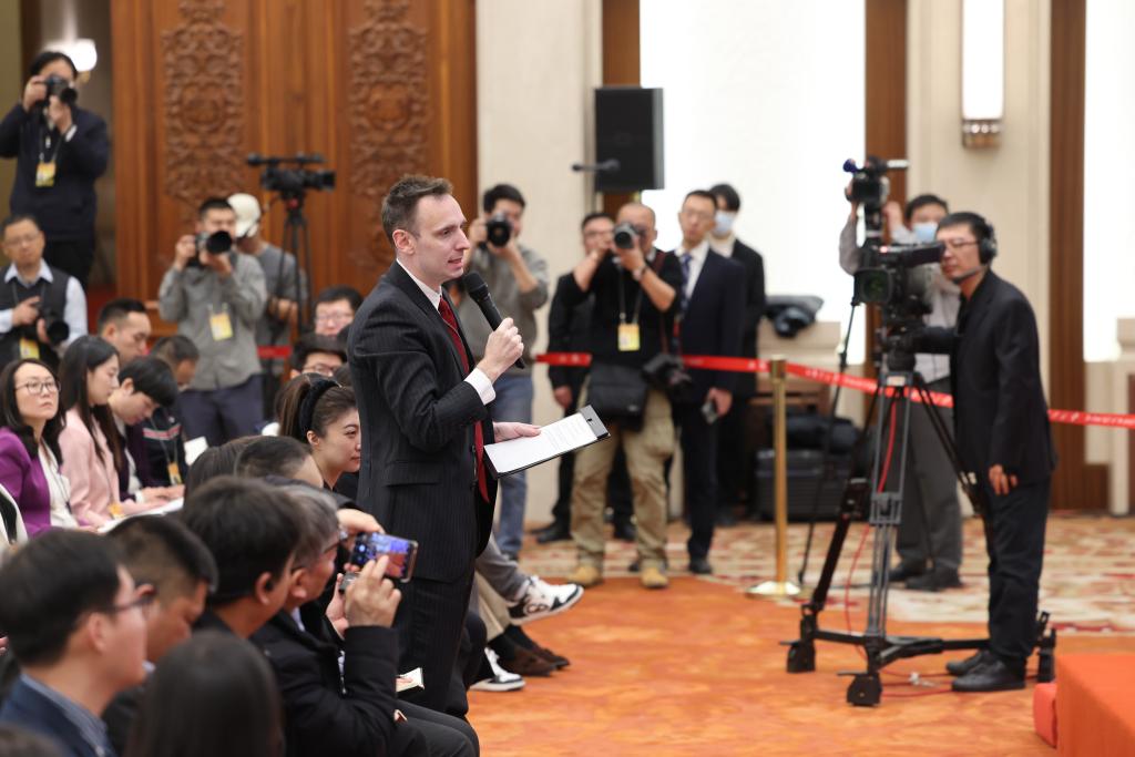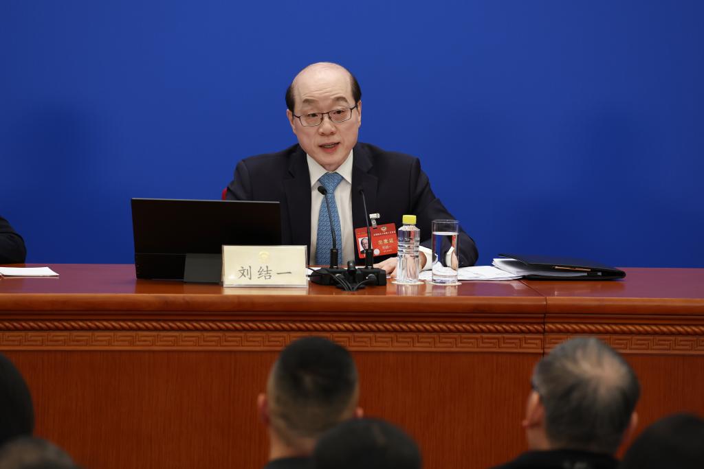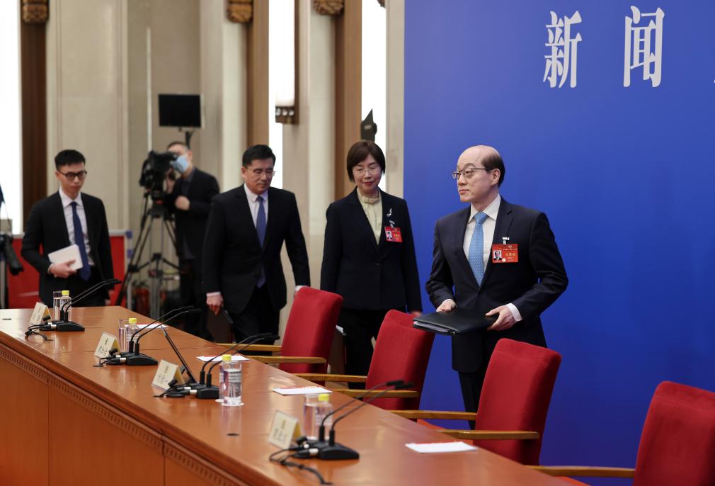 3月3日,全國(guó)政協(xié)十四屆二次會(huì)議新聞發(fā)布會(huì)在北京人民大會(huì)堂舉行。大會(huì)新聞發(fā)言人劉結(jié)一向中外媒體介紹本次大會(huì)有關(guān)情況并回答記者提問(wèn)。這是記者在發(fā)布會(huì)上采訪。