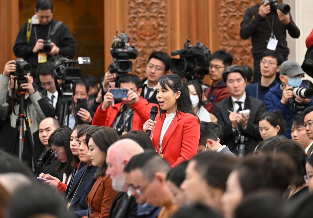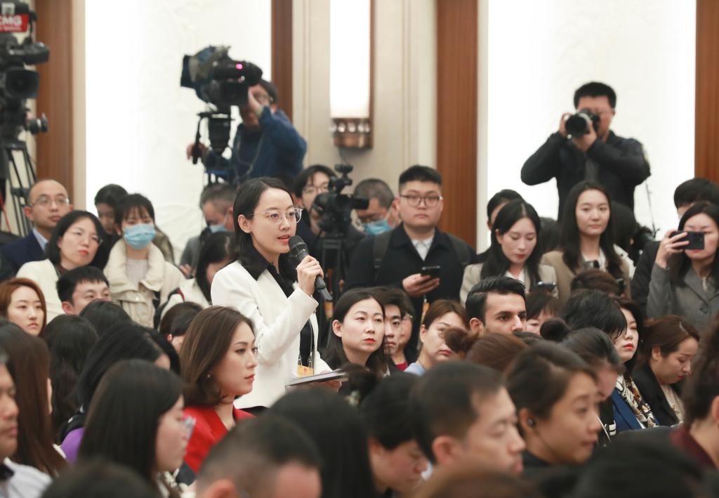 3月4日,十四屆全國人大二次會議在北京人民大會堂舉行新聞發(fā)布會。大會發(fā)言人婁勤儉就大會議程和人大工作相關(guān)問題回答中外記者的提問。這是記者在發(fā)布會上提問。