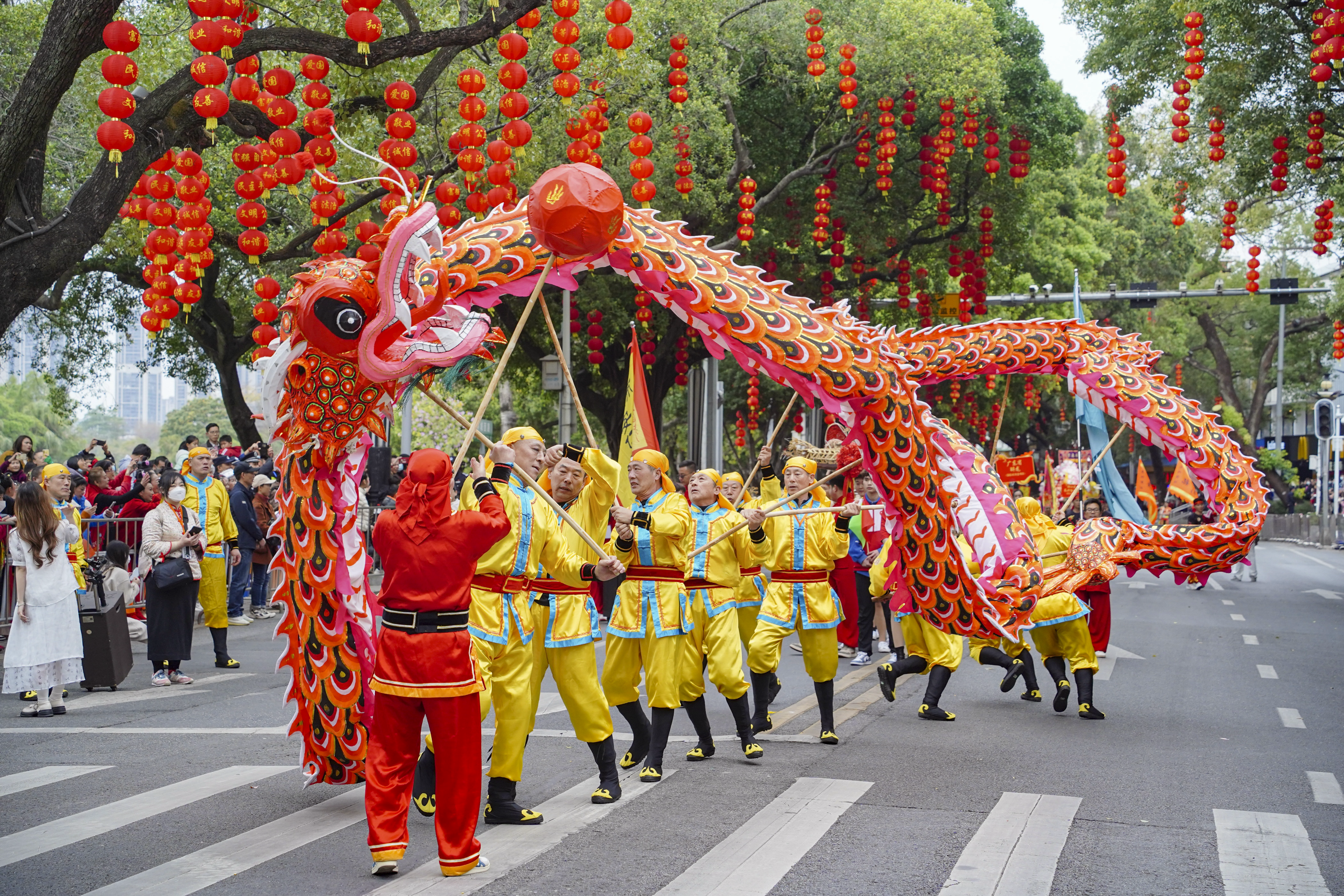 2024年春節(jié)期間,為營造歡樂祥和的節(jié)日氛圍,文化和旅游部非物質(zhì)文化遺產(chǎn)司發(fā)動各地廣泛開展“舞動中國龍”——龍舞大巡游活動。該活動是文化和旅游部“歡歡喜喜過大年”2024年春節(jié)主題活動重要內(nèi)容之一。據(jù)初步統(tǒng)計,各地共舉辦龍舞類非遺項目傳承實踐活動近300場!拔鑴又袊垺薄埼璐笱灿位顒尤珖鲿䦂鲈O(shè)在廣東惠州,主會場活動包括“舞動中國龍”——龍舞大巡游和“多彩非遺鬧元宵”展演。