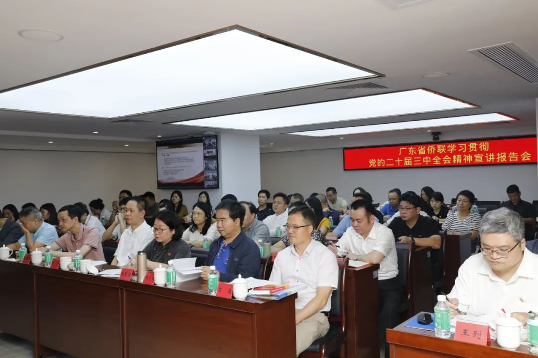郭躍文從黨的二十屆三中全會(huì)概況和重大意義、習(xí)近平總書記在黨的二十屆三中全會(huì)上的重要講話精神、全面準(zhǔn)確理解《決定》提出的進(jìn)一步全面深化改革重大舉措、全力以赴抓好全會(huì)精神貫徹落實(shí)四個(gè)方面,對(duì)全會(huì)精神作了系統(tǒng)宣講和深入闡釋。大家紛紛表示,報(bào)告主題鮮明、系統(tǒng)全面、重點(diǎn)突出,聽后倍感振奮、深受鼓舞,將從黨的二十屆三中全會(huì)精神中汲取奮進(jìn)力量,立足本職崗位,為推動(dòng)新時(shí)代廣東僑聯(lián)事業(yè)高質(zhì)量發(fā)展作出應(yīng)有貢獻(xiàn)。