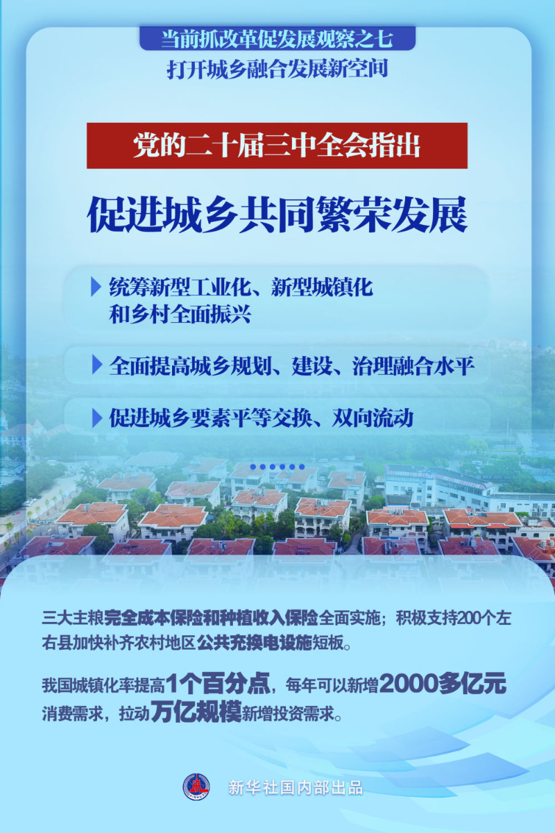 黨的二十屆三中全會(huì)審議通過的《中共中央關(guān)于進(jìn)一步全面深化改革、推進(jìn)中國式現(xiàn)代化的決定》,強(qiáng)調(diào)“必須統(tǒng)籌新型工業(yè)化、新型城鎮(zhèn)化和鄉(xiāng)村全面振興,全面提高城鄉(xiāng)規(guī)劃、建設(shè)、治理融合水平,促進(jìn)城鄉(xiāng)要素平等交換、雙向流動(dòng),縮小城鄉(xiāng)差別,促進(jìn)城鄉(xiāng)共同繁榮發(fā)展”。