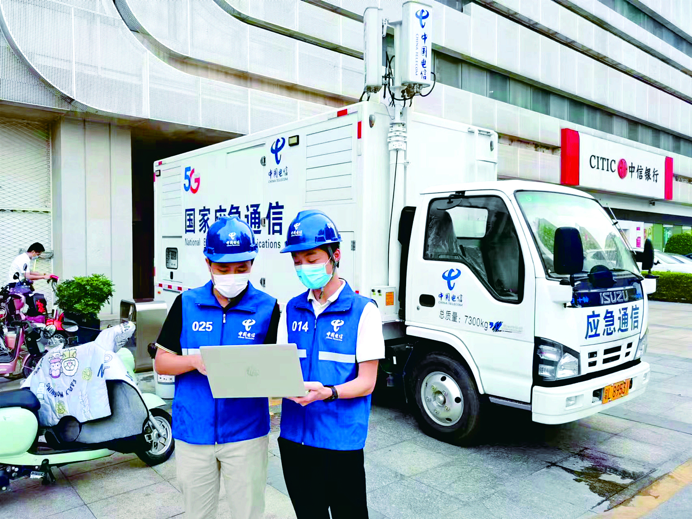 維護(hù)人員在仲愷科融大廈附近執(zhí)行通信保障任務(wù)。