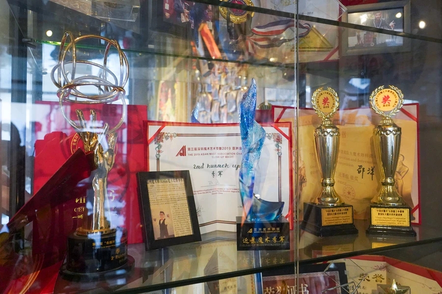 魔術(shù)師邵洋從業(yè)以來獲得的部分榮譽。 惠州日報記者陳濤 攝