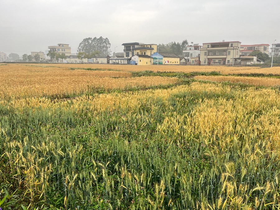 麥田與民居相得益彰。 惠州日?qǐng)?bào)記者黃桃 通訊員馬麗娟 譚國(guó)強(qiáng) 攝