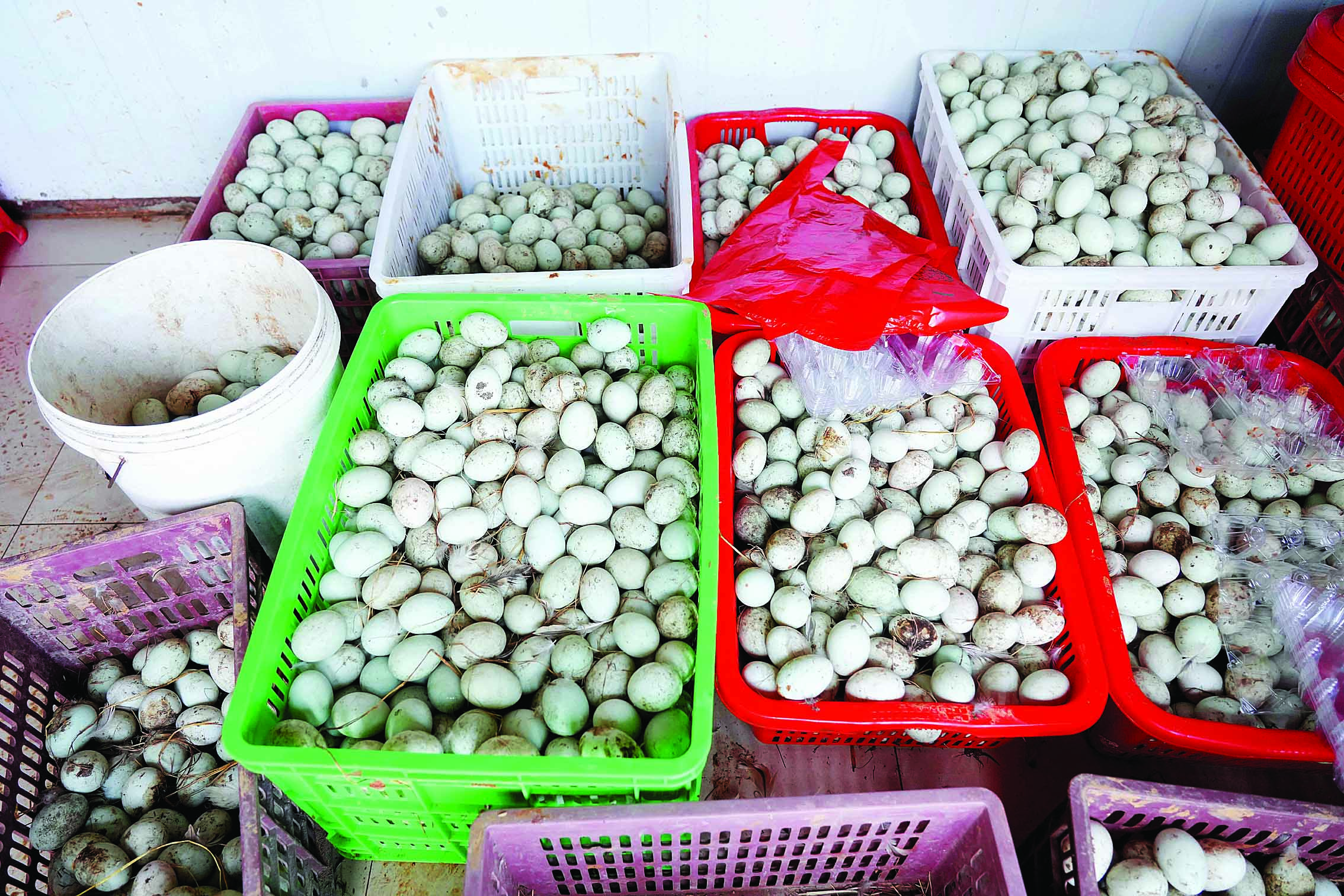 惠東縣鐵涌鎮(zhèn)油麻地村養(yǎng)殖的3000多只鴨每天可產(chǎn)蛋約1600枚。 惠州日?qǐng)?bào)記者楊建業(yè) 攝