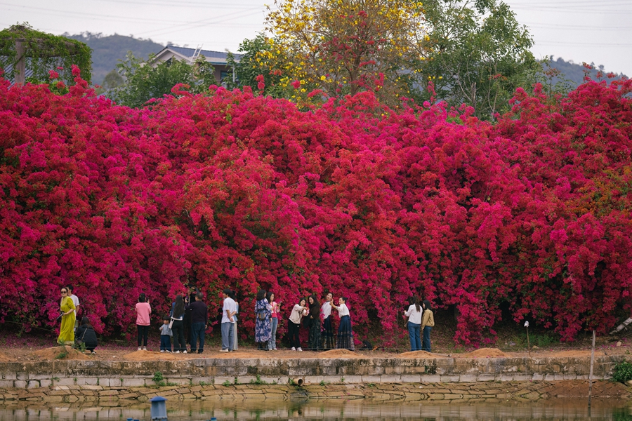 積極探索“村干部先行、黨員跟進(jìn)、巾幗志愿推動(dòng)、輻射周邊家庭”工作模式,抓住黃屋村“美麗庭院”示范戶“三角梅瀑布”火出圈的熱度,積極培育一批“美麗庭院+”特色小院,助力打響潼湖文旅品牌。